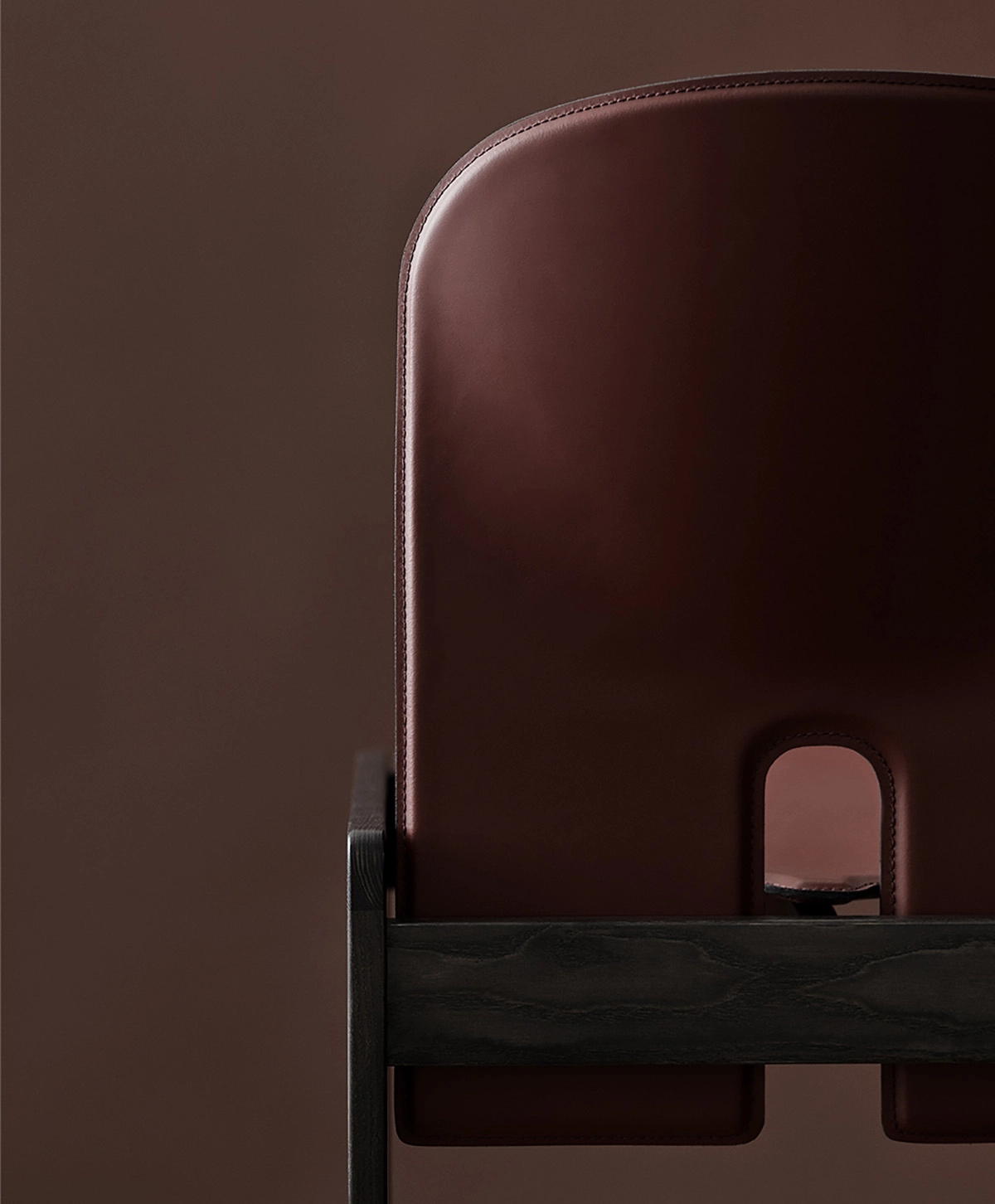 The design is characterized by a firm and robust wooden frame that creates a striking contrast to the lightness of the seat and back. The seat and back are anatomically shaped in plywood, covered in fine European leather, and attached by bolts to crosspieces along the center for great comfort. Originally inspired by a sketch made by Tobia’s father, Venetian architect and designer, Carlo Scarpa, the 121 came to life with a distinct touch from Afra and Tobia Scarpa in 1965.