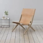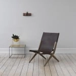 As in Mogens Lassen’s architecture, nothing in the chair’s design is left to chance and everything is worked out down to the smallest detail. The strong, stretched leather clings to the wood and creates an almost harmonious, organic form. The curved rivets in brass along the back break with the otherwise stringent expression and exemplify the fact that Mogens Lassen was not afraid of going against the grain and breaking with conventions. While the critics preferred to see new forms at the exhibitions, Mogens Lassen retained the values inherent in the handicraft of past times, which he reinterpreted and made his own. ”The other Cabinetmakers shake in their boots when they see me”, he declared, thereby emphasising his position as a popular enfant terrible in the profession. The collapsible chair invites an extra guest to join the gathering and with its minimalistic, simple expression is perfect in both large and small quality-conscious homes – and is at least as current and modern here 60 years on.