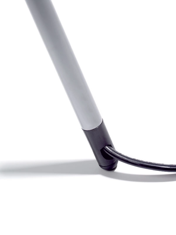 Radon is a light and mobile lamp, made of moulded materials and mounted with rubber feet so it stands firm. The neck at the shade provides flexibility and brings the lamp to life. There is also some air between the shade and the reflector, which insulates and allows you to handle the shade. The switch is placed at the top of the lamp, while the cord leads discreetly out of the back leg to help preserve the lamp’s clean lines.