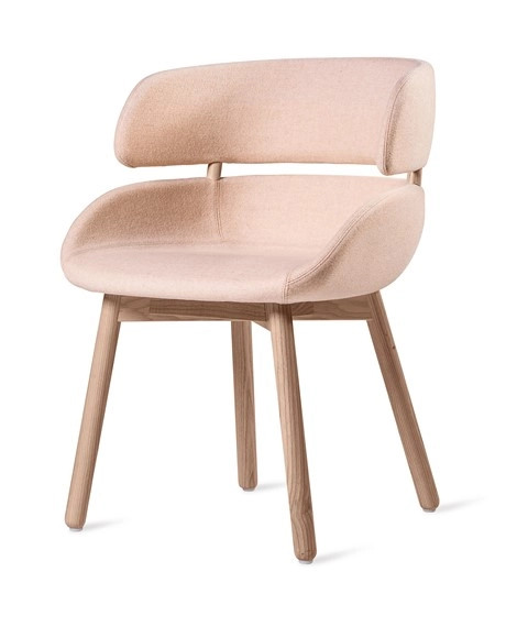 Comfort in a small space. Neatness in a solid chair. Soft lines with an indulgent gap in the back. The ability to fit into any environment, thanks to its different materials and colours.