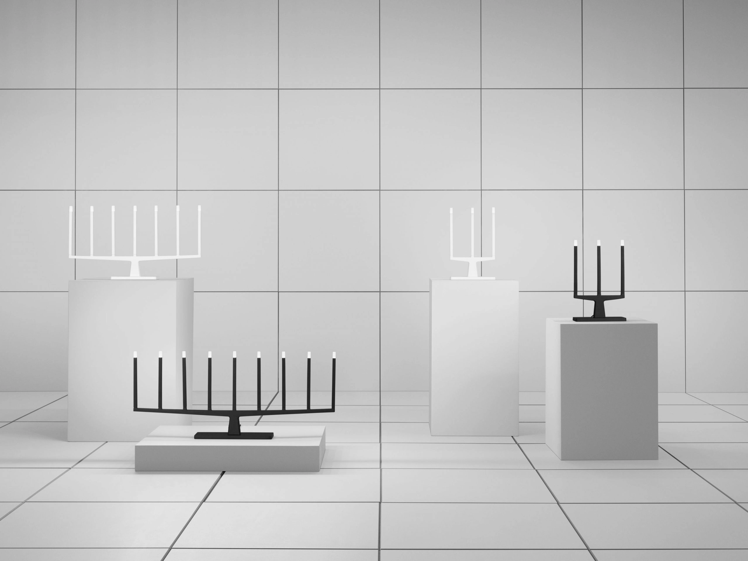 The candlesticks come in two colours: graphic black or white. Table base, luminaire housing and lights are made of die-cast, lacquered aluminium. All are dimmable via a push button – to give the lighting a personal touch.
