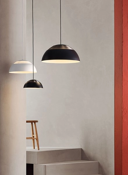 The AJ Royal is available in white, in its two original sizes. A new, smaller version will be introduced in 2020 as well, just as the series will be reintroduced in black. The AJ Royal retains its classic, graphic look as sharply as ever – irrespective of whether it lights up a dining table, is used in an office, or a showroom, where it ensures even and flawless downward lighting and generates an ambience in any space with its muted upward light. In the new, energy-saving LED version all three sizes of pendants come with a diffusor that offers smoother, 100% glare-free lighting.
