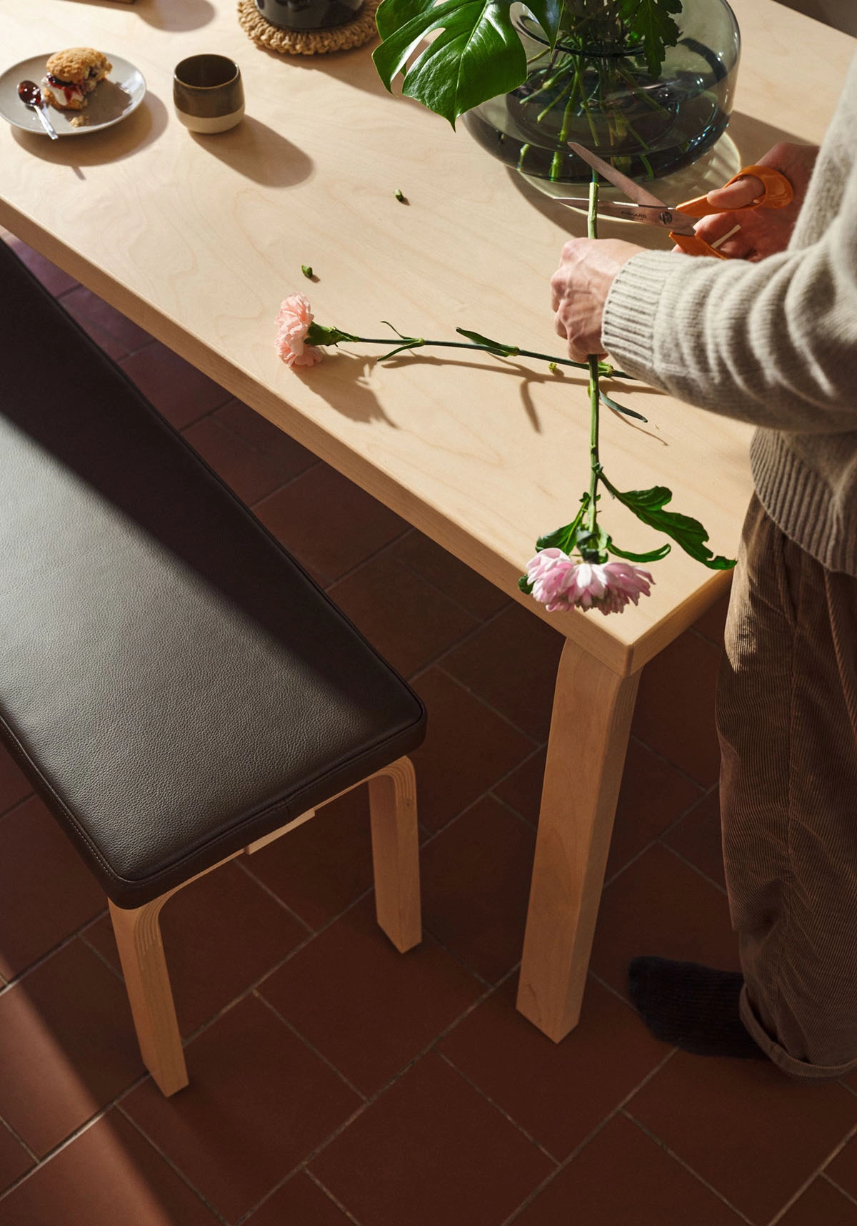 Aalto Benches are functional and versatile, equally at home in the public and private spheres. Combining strength with the warm organic qualities of Finnish birch, Aalto Benches pair naturally with tables and other forms of seating. Now available in two larger new sizes and with new seat options, Aalto Benches are the perfect match for every occasion.