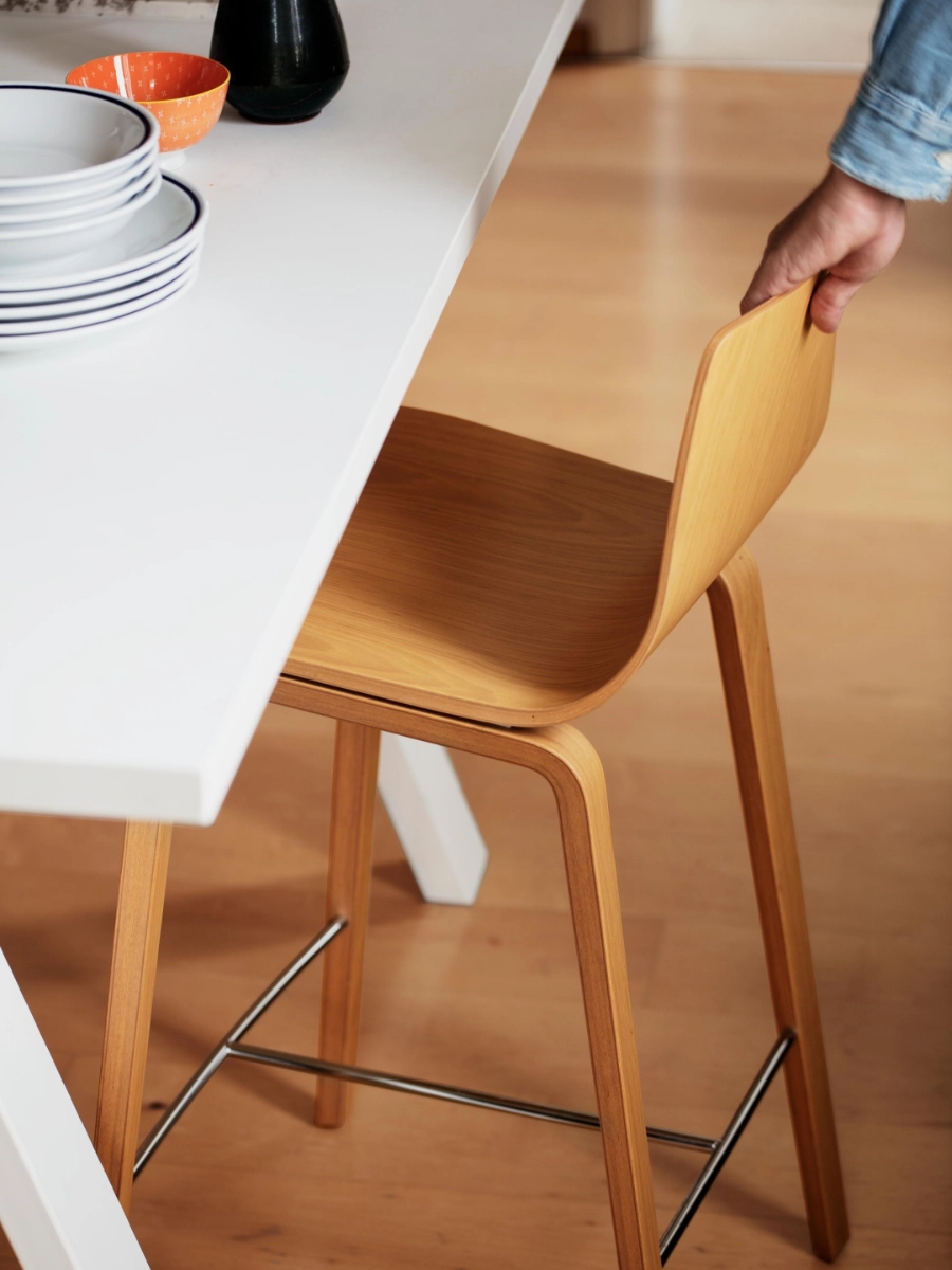 Aava 02 marks an evolution in Arper’s sustainability journey. For Aava 02, we implemented a custom post-consumer plastic, mainly derived from detergent bottles. This new post-consumer recycled polypropylene reinforced with fiberglass and virgin material offers durability without sacrificing high quality finish and color. The colorways each contain differing percentage levels of the post-consumer recycled material, starting from 5% for lighter colors, all the way up to 40% for darker ones.