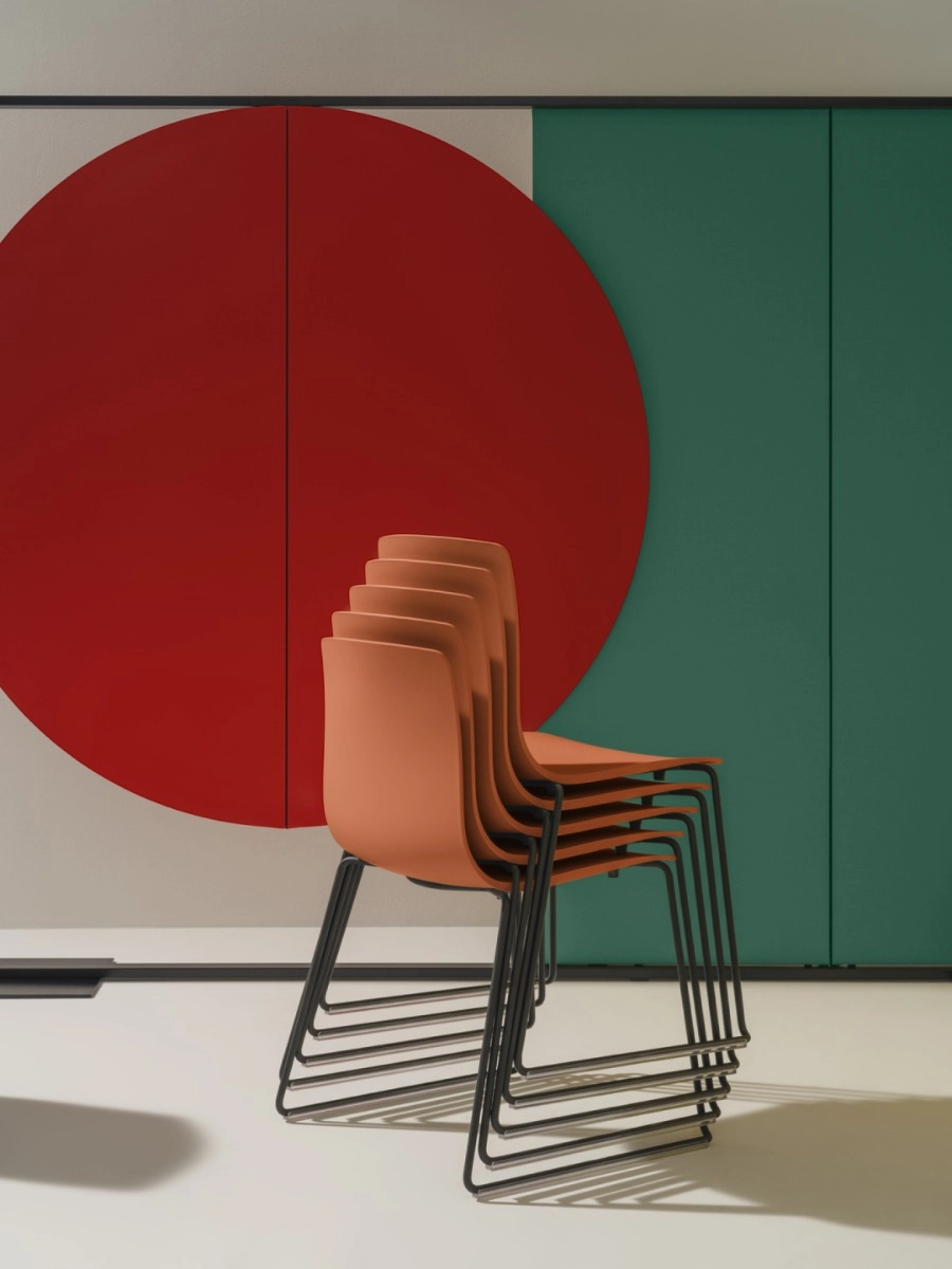 The classic minimalism of Aava looks forward with new sustainable materials. Made from both a durable and beautiful post-consumer plastic and virgin polypropylene in a new palette of colors designed to complement other Arper collections, Aava 02 offers a responsible model that has our future at top of mind, creating beauty for the generations to come.