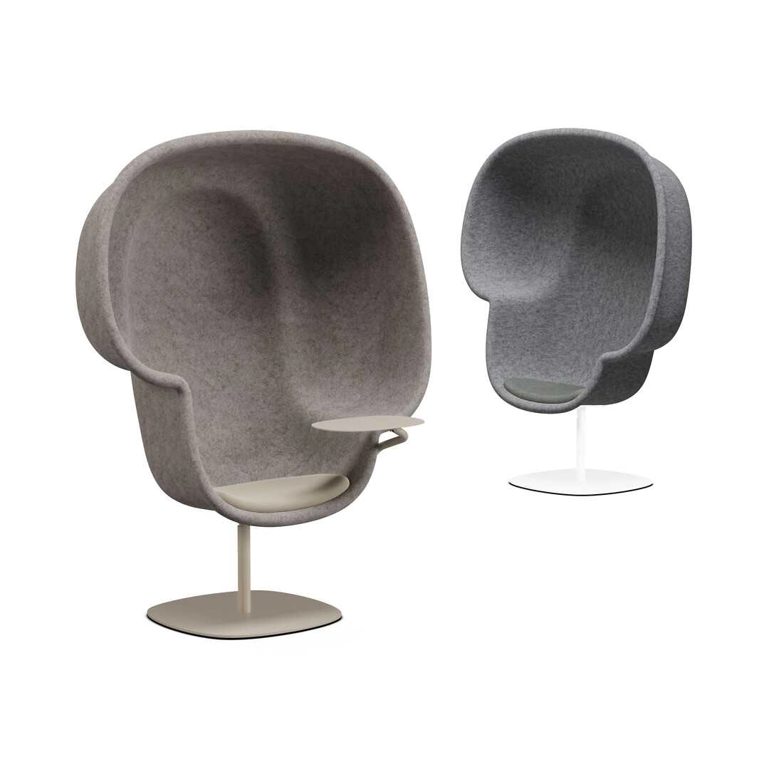 Hubbe is suitable for various lobbies, break rooms, and waiting areas. Thanks to the cup-shaped seat, the chair provides an acoustic and sound-insulating, sheltered seat where you can relax or work in peace. A laptop table enables a better working position.