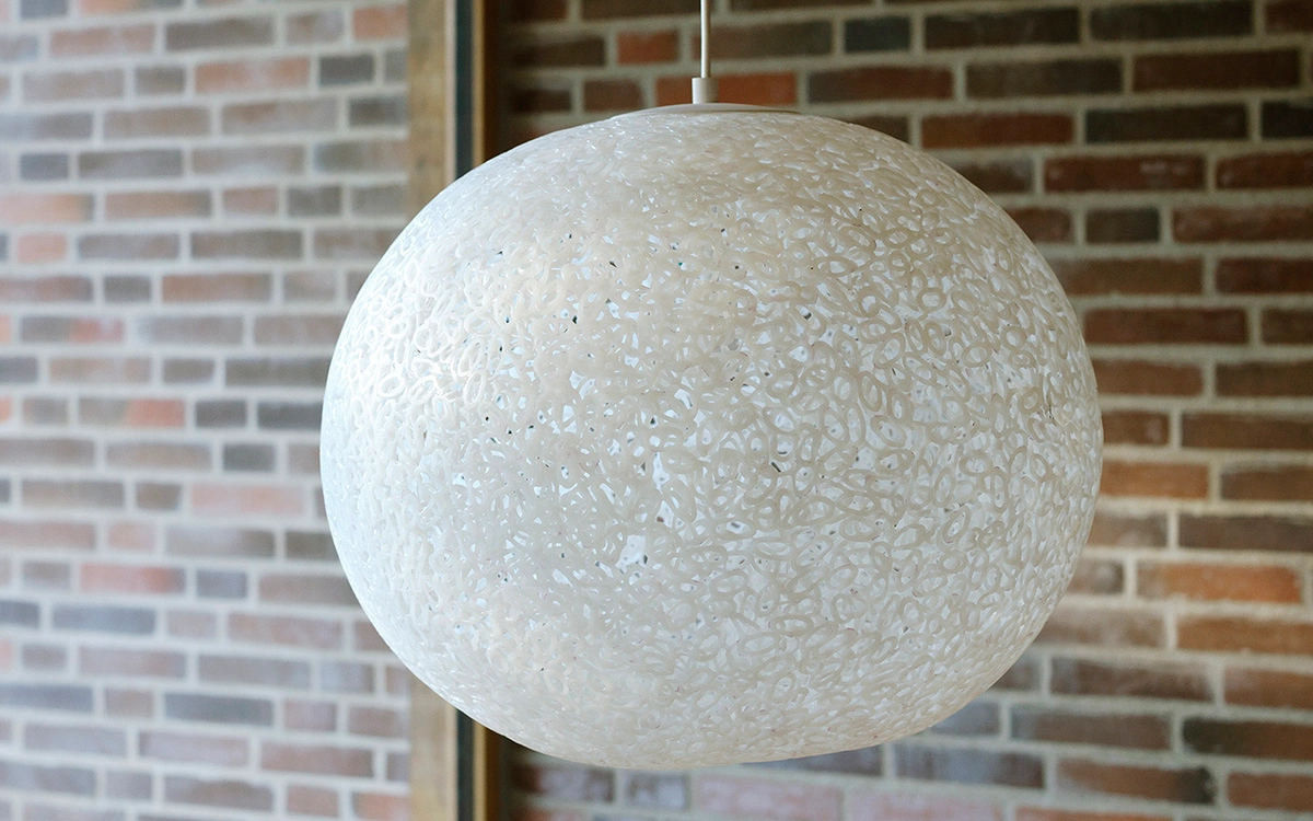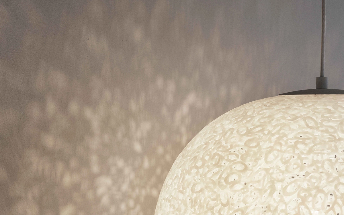 Crafted from discarded PEX water pipe scraps – materials traditionally incinerated due to their complex composition which prevents them from being reused – the Act Lamp embodies a commitment to circular design and resourceful innovation.