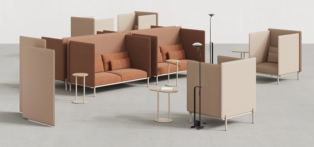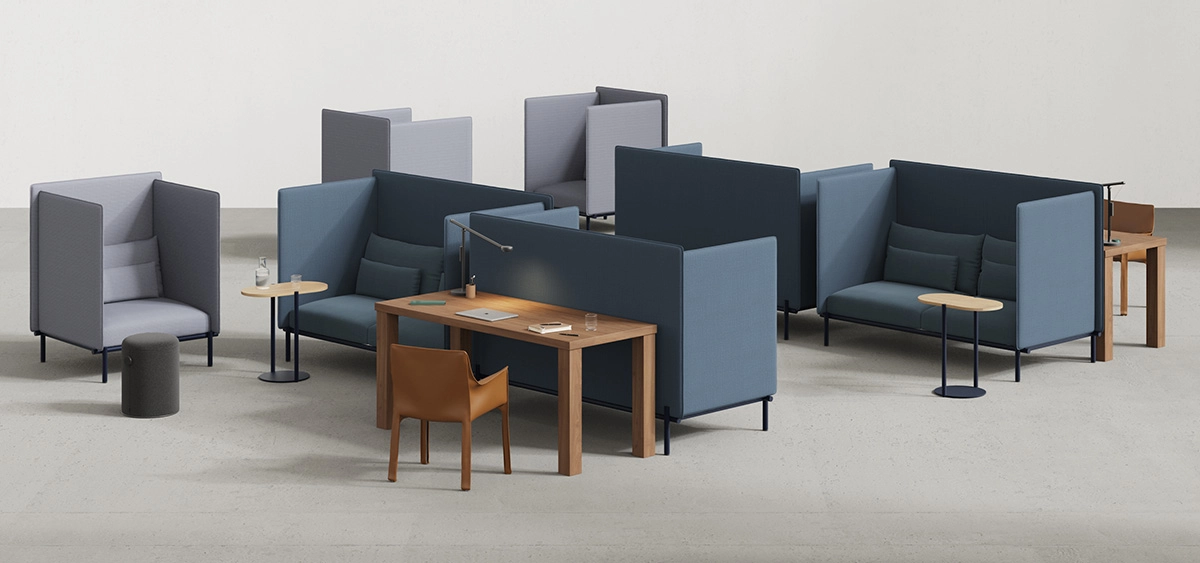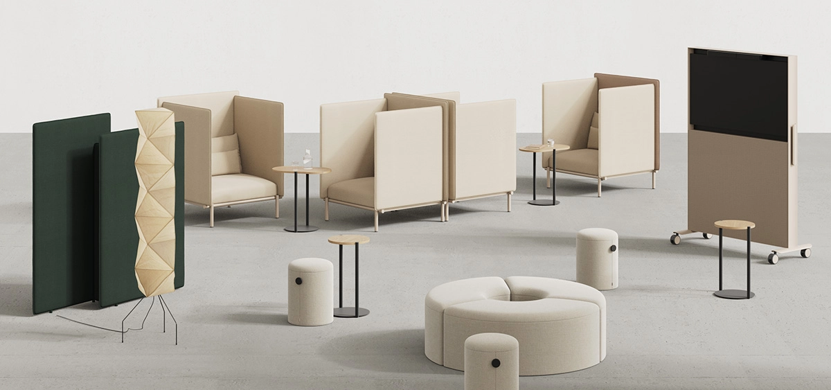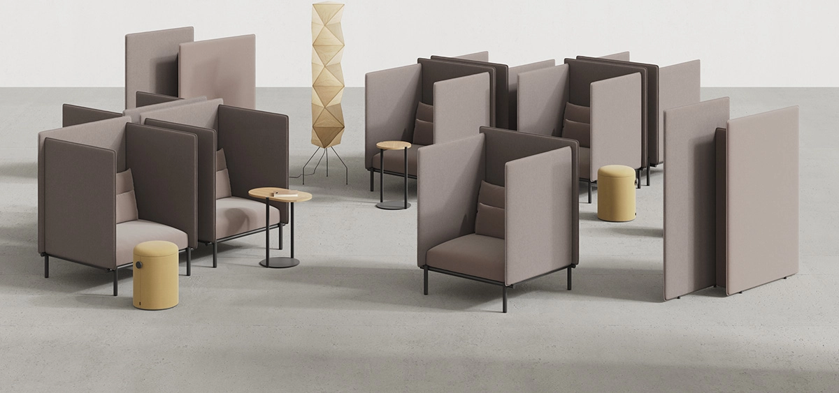 ambitiously tackles two of the biggest challenges facing many of today’s workplaces. The first is to create better soundscapes that promote well-being and job satisfaction. The second is to offer employees secluded, quiet smaller areas where they can focus on their work in comfort, either alone or in small groups.
