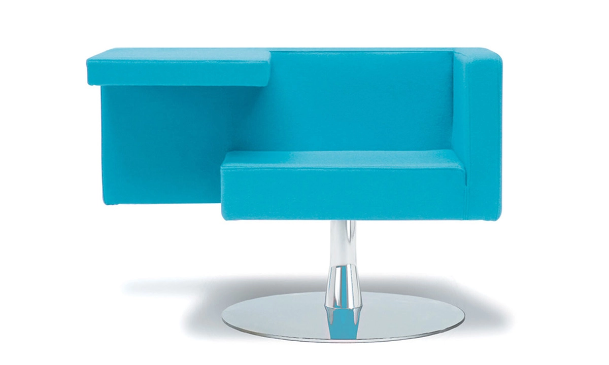 Alfredo Häberli’s new SOLITAIRE is an easy chair where one armrest is like a desktop, for writing, reading, eating or just sitting on. The freestanding chair revolves and, with its ingenious and functionally designed armrest, performs more functions than being just a seat.