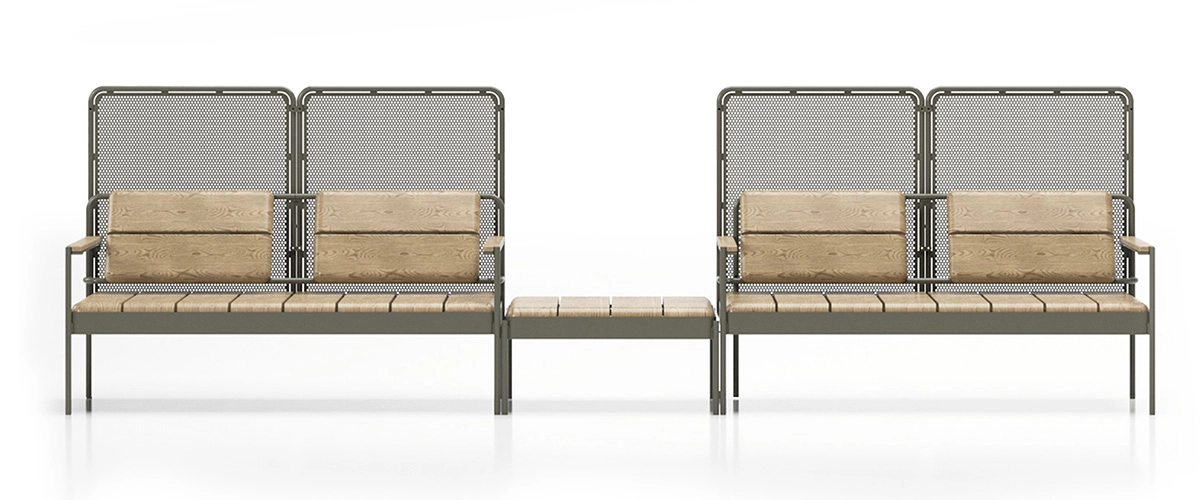 What sets Alta apart, as the name suggests, is the ability to elevate (altitude) the furniture by adding perforated screens to the back or sides. This can create a more private atmosphere, allowing users to enjoy the sensation of sitting in the warm spring sun without needing a building to lean against.