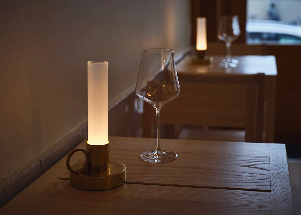Visir table lamp is an hommage to the classic portable oil lamp by Pierre Sindre