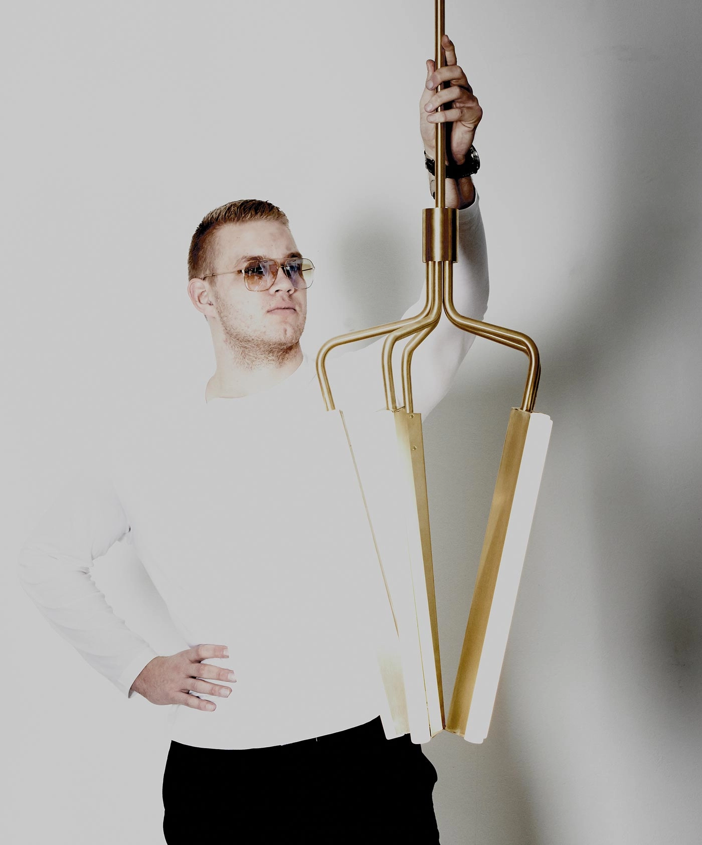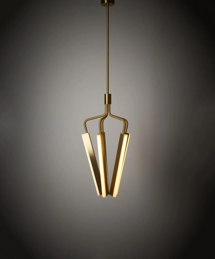The bases for the light sources, fitted to the Angel 5 – 500 Chandelier, is edge pressed and made from either iron or brass. The three light elements are placed round a center and you can choose between 4 different total heights depending on the space you want the lamp to be fitted in. All metal parts are solid and the Steel and Brass versions are brushed and then given a clear coat of lacquer.