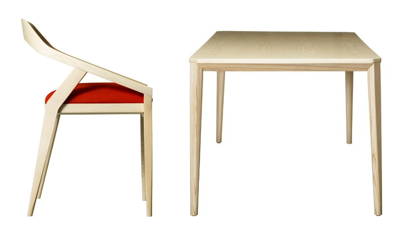 wooden chair in solid ash wood with upholstered seat in fabric or leather.
