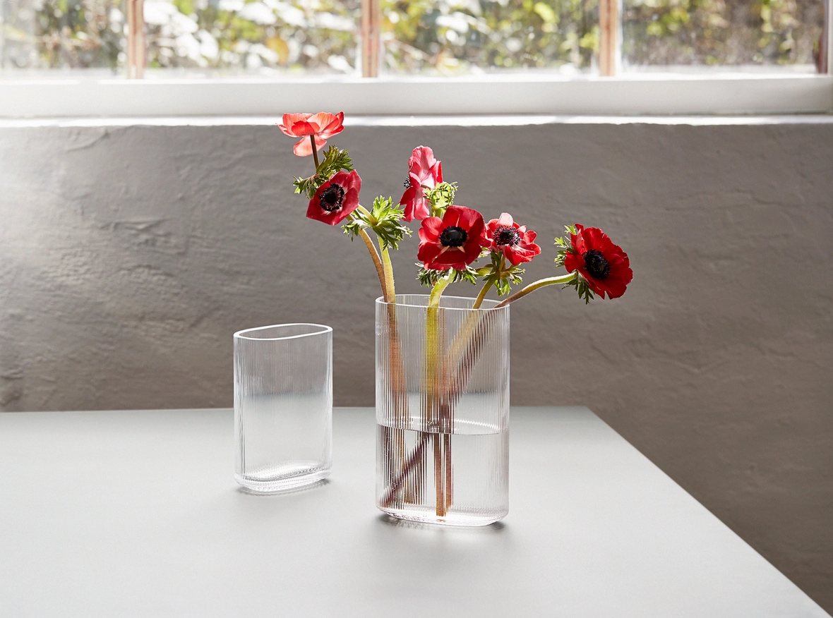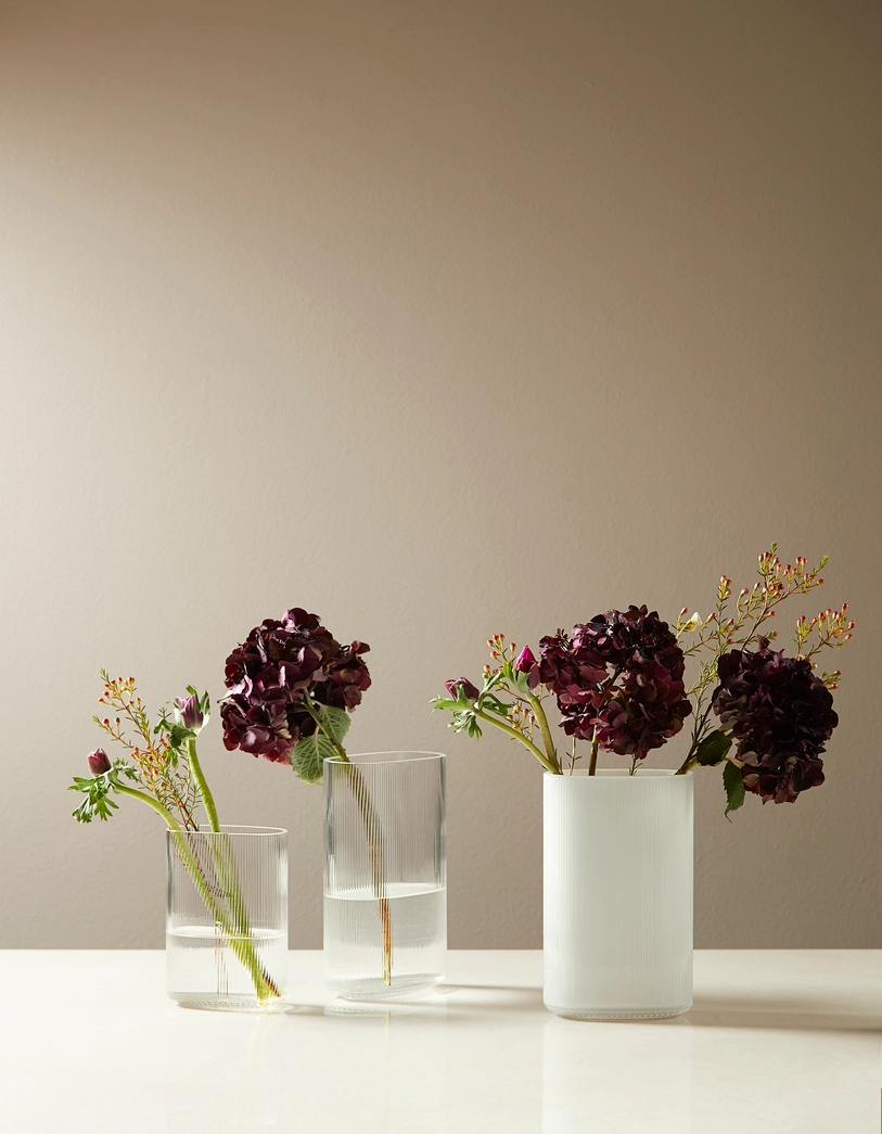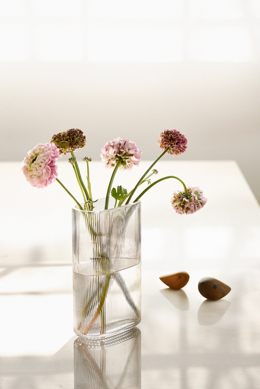 The Arctic Vase was originally designed in the 1960s by the acclaimed Swedish glass artist and silversmith, Gunnar Cyrén and is now being manufactured by Warm Nordic. The Arctic vase is made in clear mouth-blown glass and opal with fine grooves on the side and bobbles in the bottom, which lend a touch of exclusiveness and extra weight to the vase. Its high quality and timeless elegance make the Arctic vase a stylish companion for classic bouquets, beautiful together with wild field flowers and sophisticated with individual twigs. An exclusive, original vase from a heyday in the history of glassware.