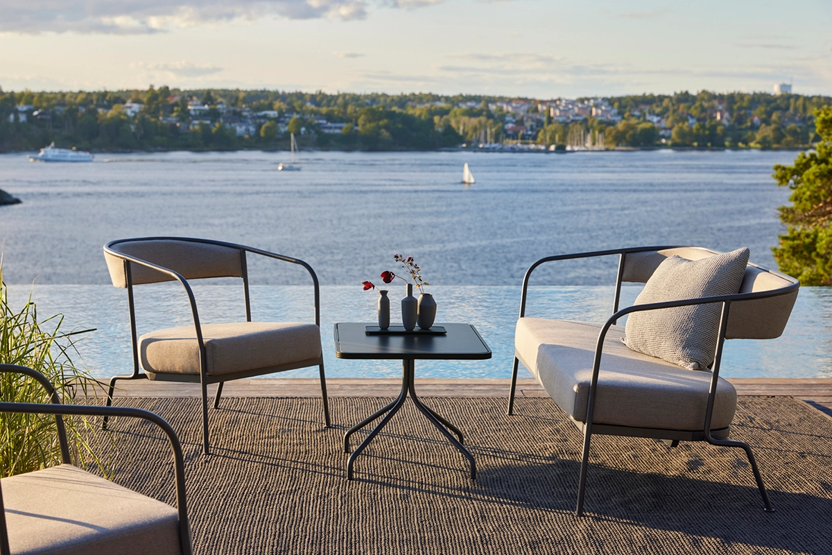 Arholma is a minimalistic collection of outdoor dining and lounge furniture. The collection is crafted in a galvanized powder-coated aluminum frame with durable outdoor fabric that withstands even the toughest of climates. Sustainability, in all aspects of the word, is at its core. It’s durable, resilient and resource-smart. It looks contemporary by being timeless, this means it’s unlikely that Arholma will ever become outdated.