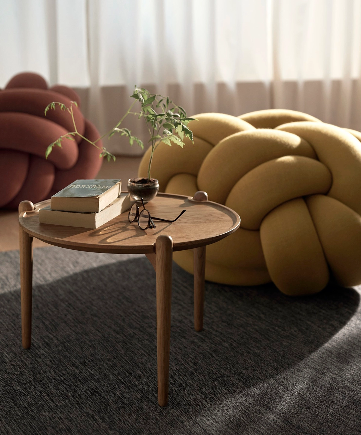 Use it as a stand-alone table or have two nested together. Aria Table is a feat of illusion where legs and tabletop seem to be separated; the circular plate suspended in plein air. The magic is retained thanks to the tapered legs that protrude slightly above the rimmed top surface, keeping it in a firm grip to balance flight and permanence. ’I choose the name Aria inspired by the opera and air itself’, says Dögg Guðmundsdóttir, Icelandic designer based in Copenhagen. ‘It’s like singing an air, and Aria Table does really fly like music.’