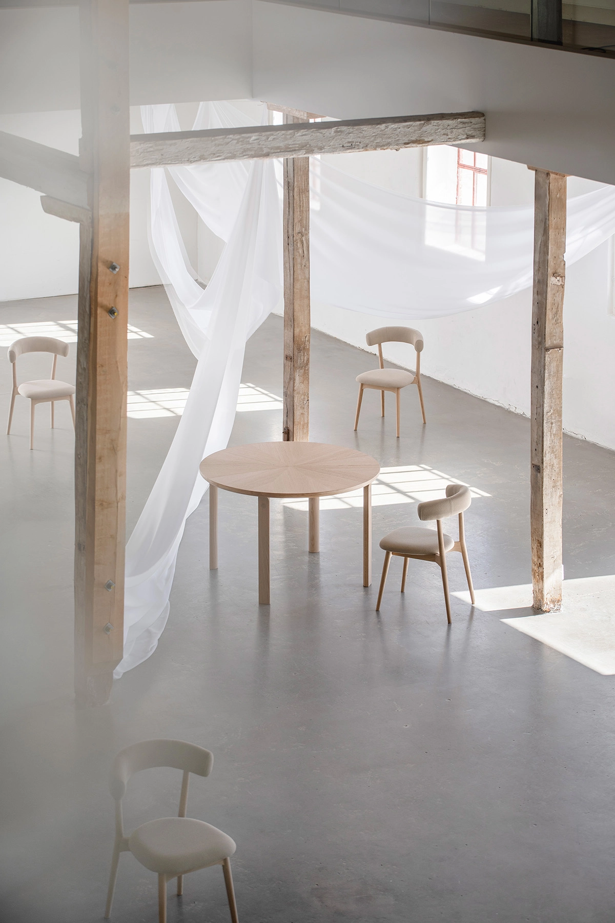 The Aro series was created with an ambition to unite function and form in a harmonious and inviting expression, where each element in the series enters into a natural and honest dialogue with each other. The circular detail that recurs in both the legs and bases of tables and storage furniture visually ties the series together and adds a character-defining feature that emphasises the rounded and soft nature of the design.