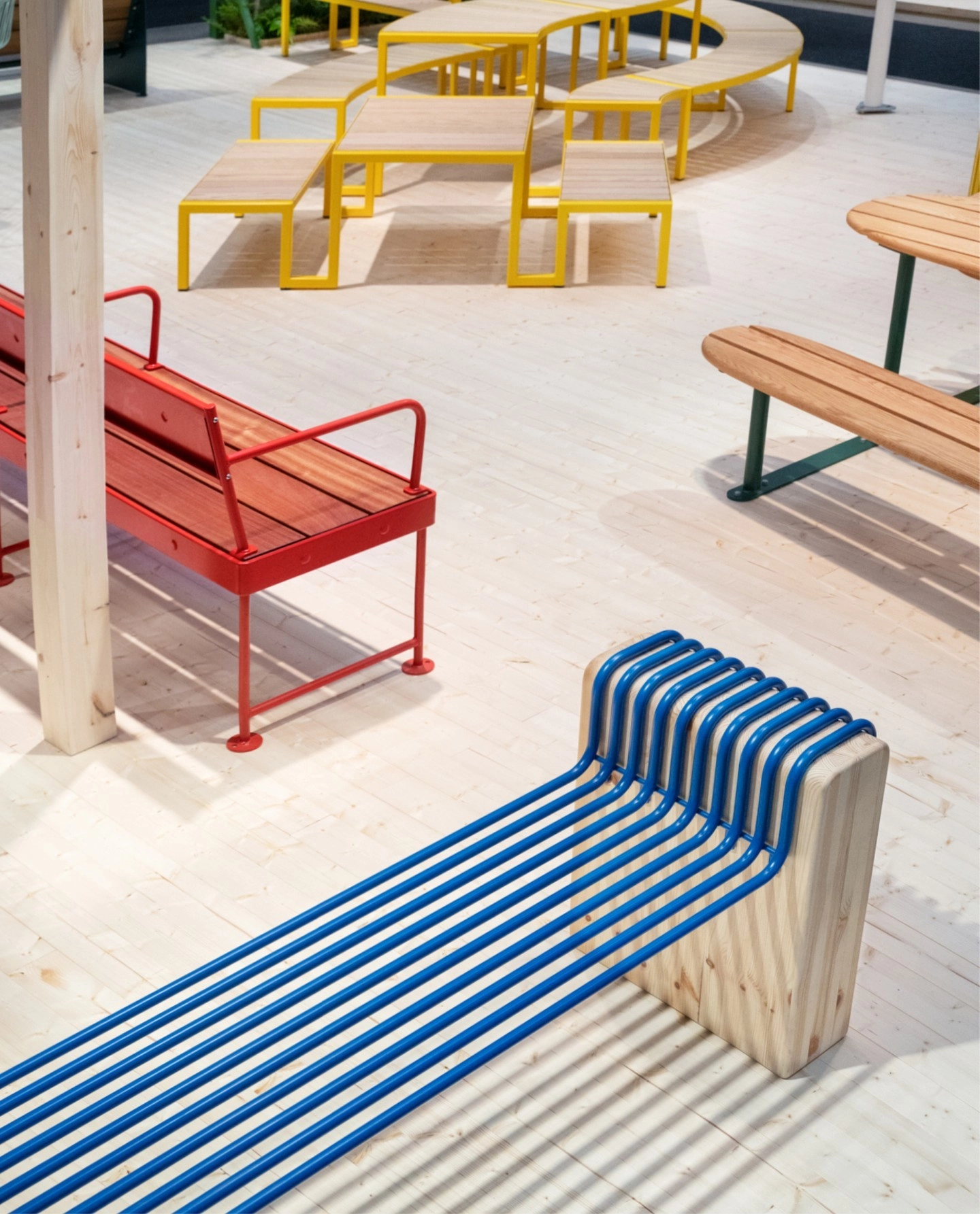 Aros is a bench designed to bring color and playfulness to public spaces by Alexander Morén – Nola