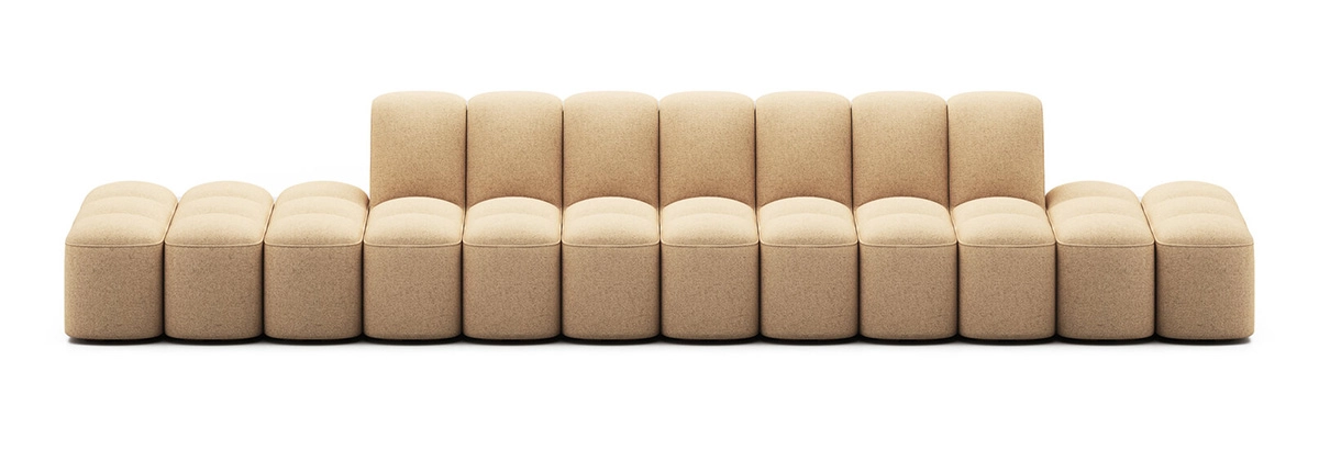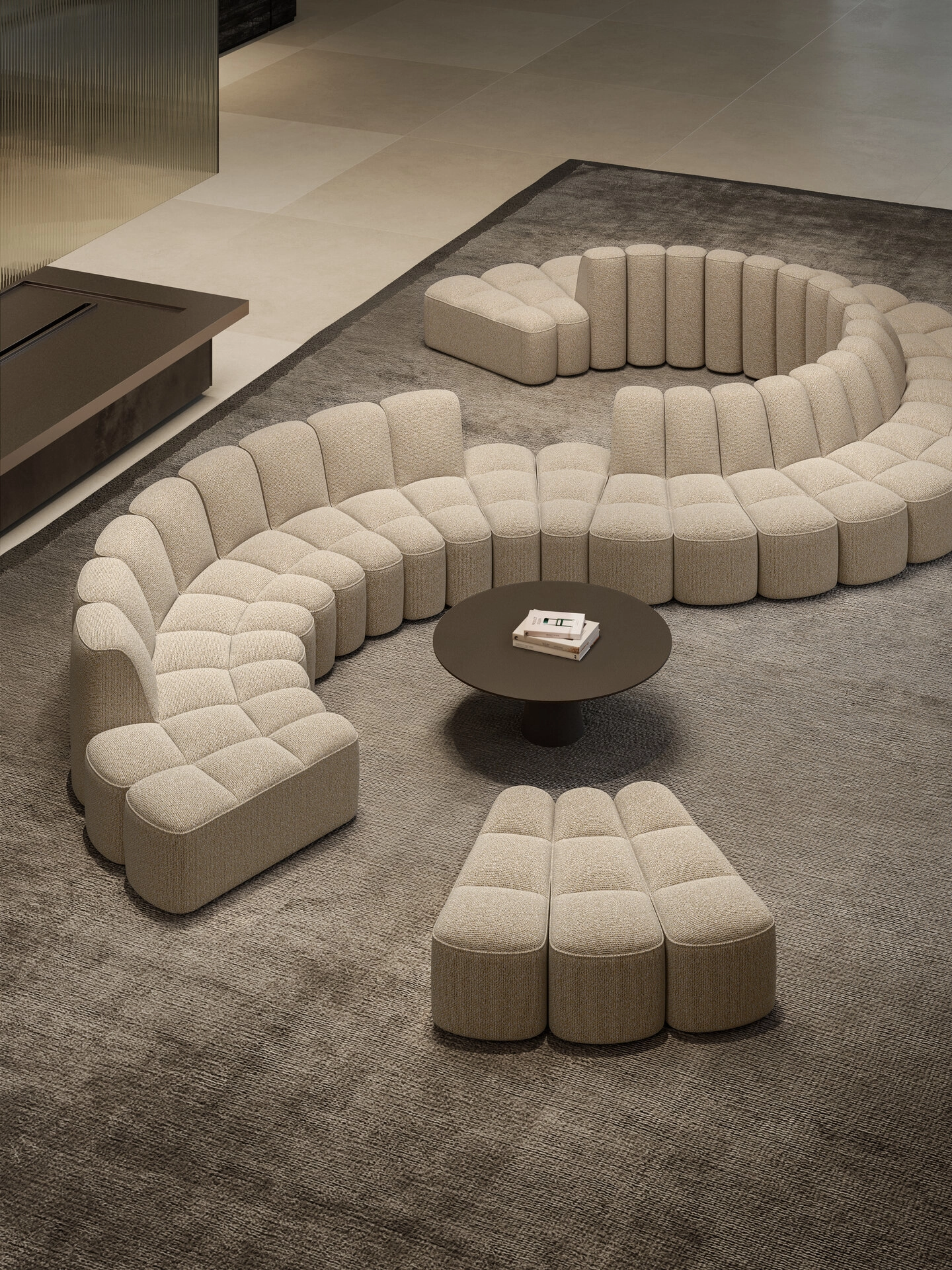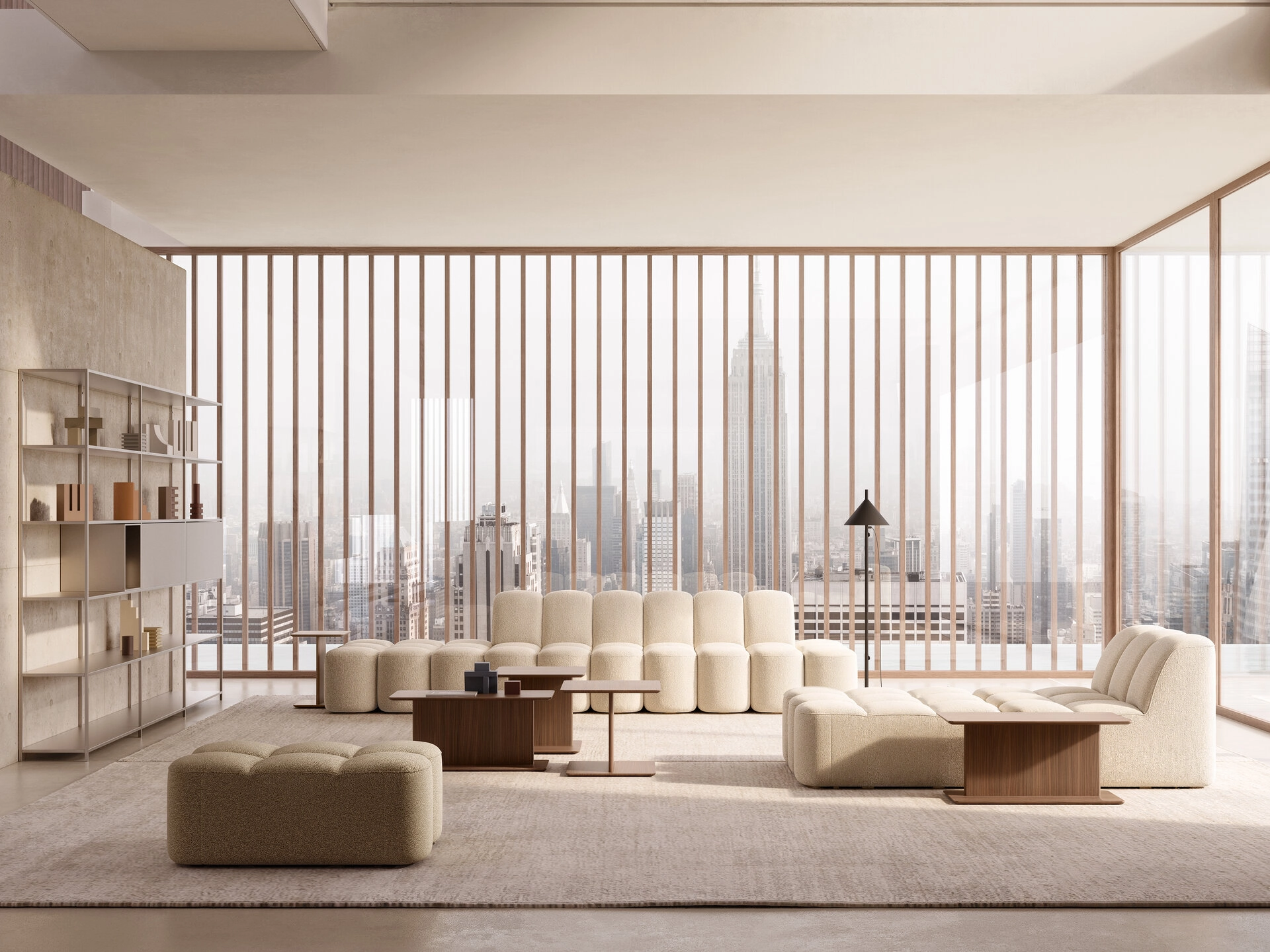 Array is a sofa system designed by Snøhetta to offer maximum flexibility and comfort. It’s a new approach to sofa design and construction, and its goals are reducing environmental impact, achieving customised living solutions, and simplifying logistics. To this end, it introduces small modules that are easy to transport and make it possible to form a variety of layouts. They can also be easily disassembled and reassembled for replacement or recycling. The concept of comfort extends throughout the entire supply chain, moving beyond its ergonomic component. The Array collection is developed from both a micro and macro perspective, and it is suitable for residential and contract contexts.