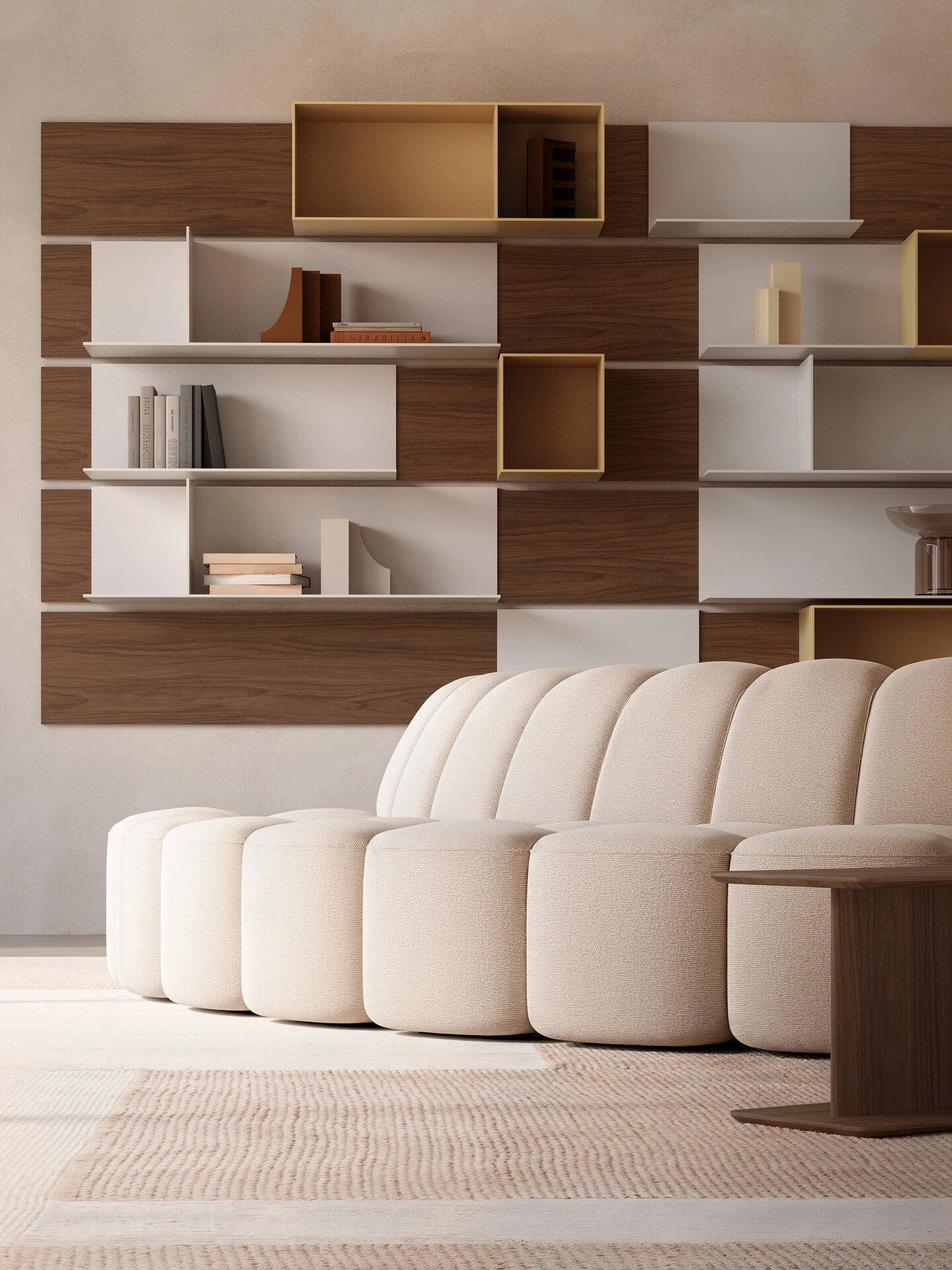A shelving system sculpting space through light, form, and movement In collaboration with BD Barcelona …