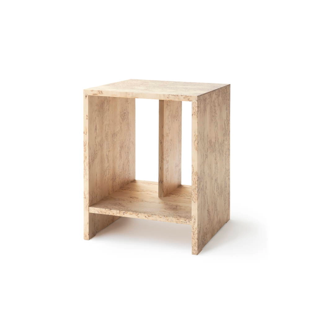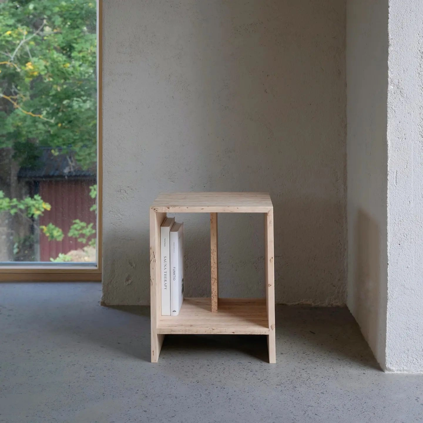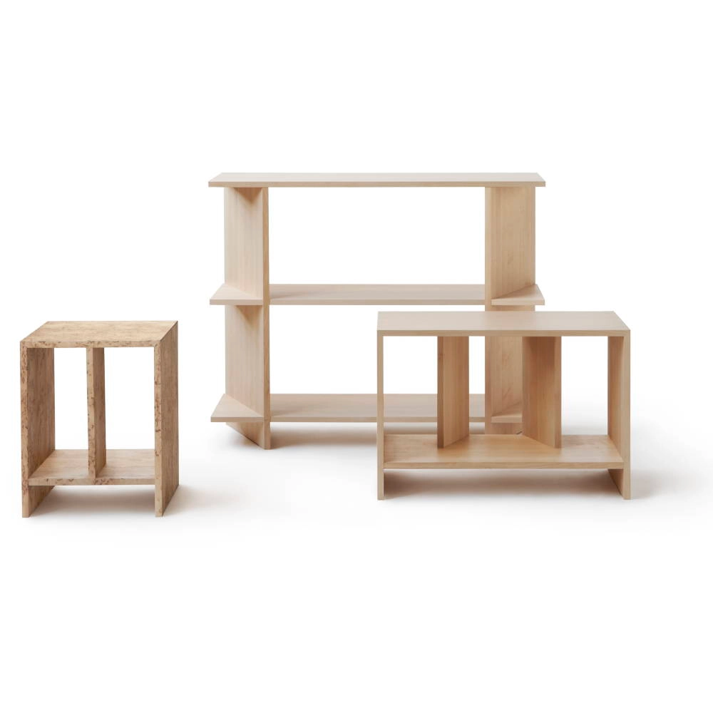 These abstract servants function in a corridor, at the entrance, in the living-, bed- and bathroom as a display for any possible object or simply as a stool, a bench or a side table. The challenge is to accept the open character and the undefined primary use of the pieces and embrace their whole presence and standout carpentry. The striped back design creates space for the material and the craftsmen behind Nikari to shine.”