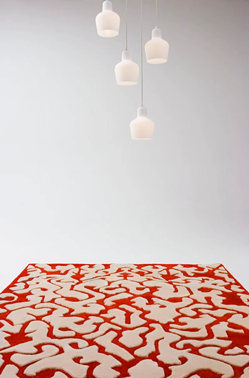 after erosion. The red and white colouring and three dimensional character make the rug modern – a fresh and interesting element for interiors.”