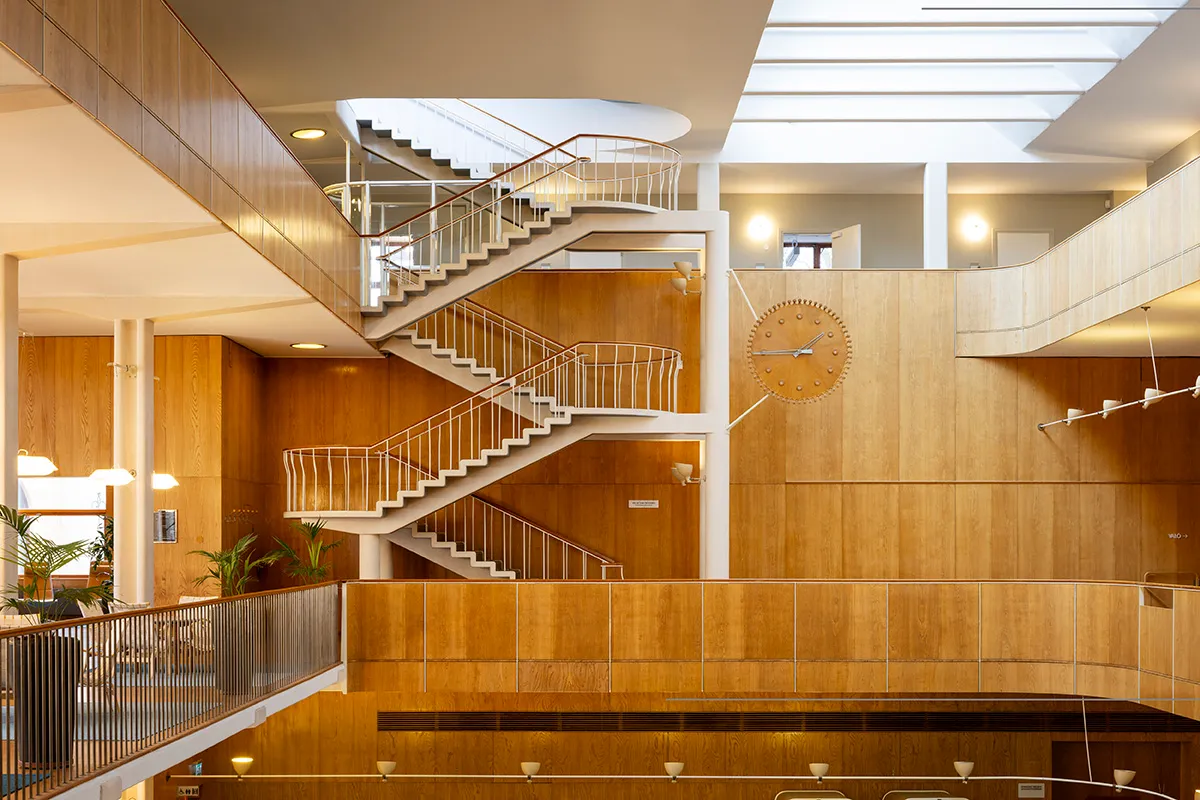 During the 1930s, attitudes toward law and justice began to shift, with a more humane view on crime emerging. Legal institutions were expected to focus on correction and rehabilitation rather than punishment. Influenced by these ideas, Asplund designed the Town Hall interior with soft shapes and natural light to inspire hope in the accused.