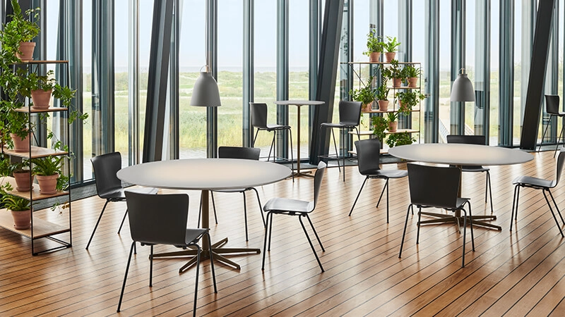 New arm pads add comfort and black powder coated bases add a contemporary look, making Vico Duo perfectly suited for agile workspace and hospitality design.