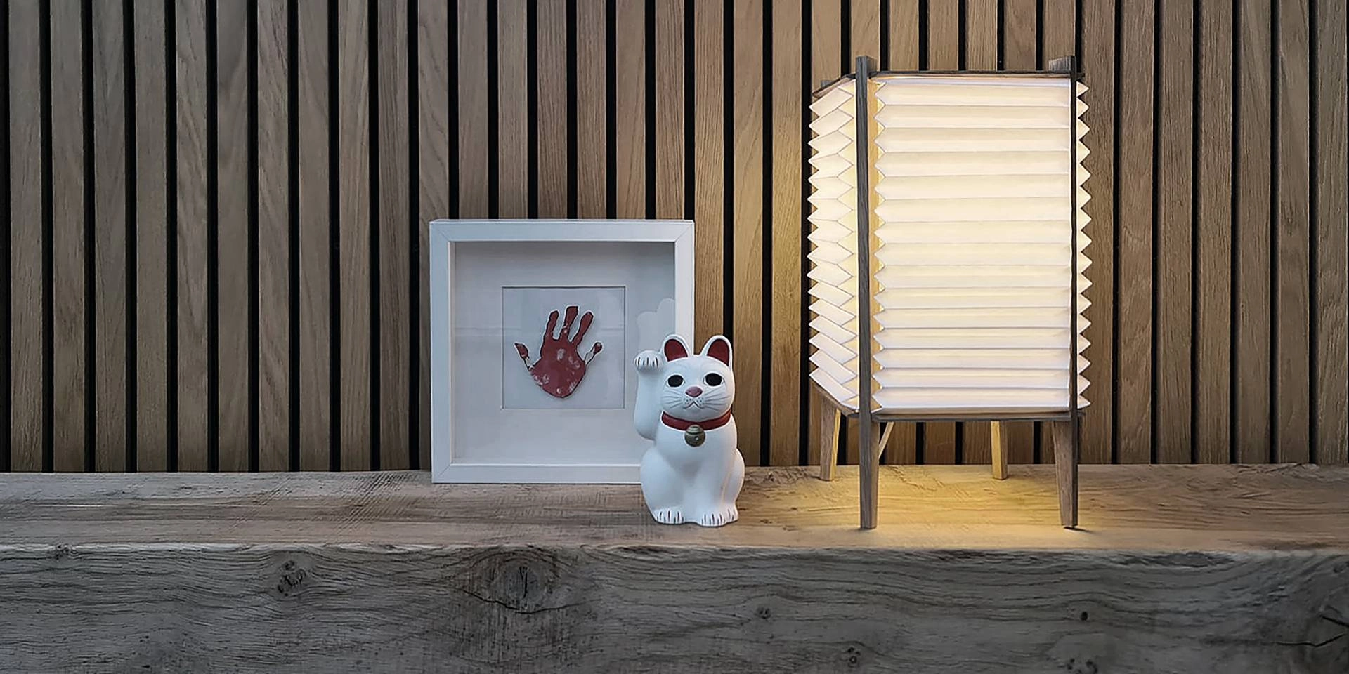The soft and organic light produces generous illumination from all sides and from the integrated diffuser which rests beautifully on the top of the wooden frame, excellently distributing the light.
