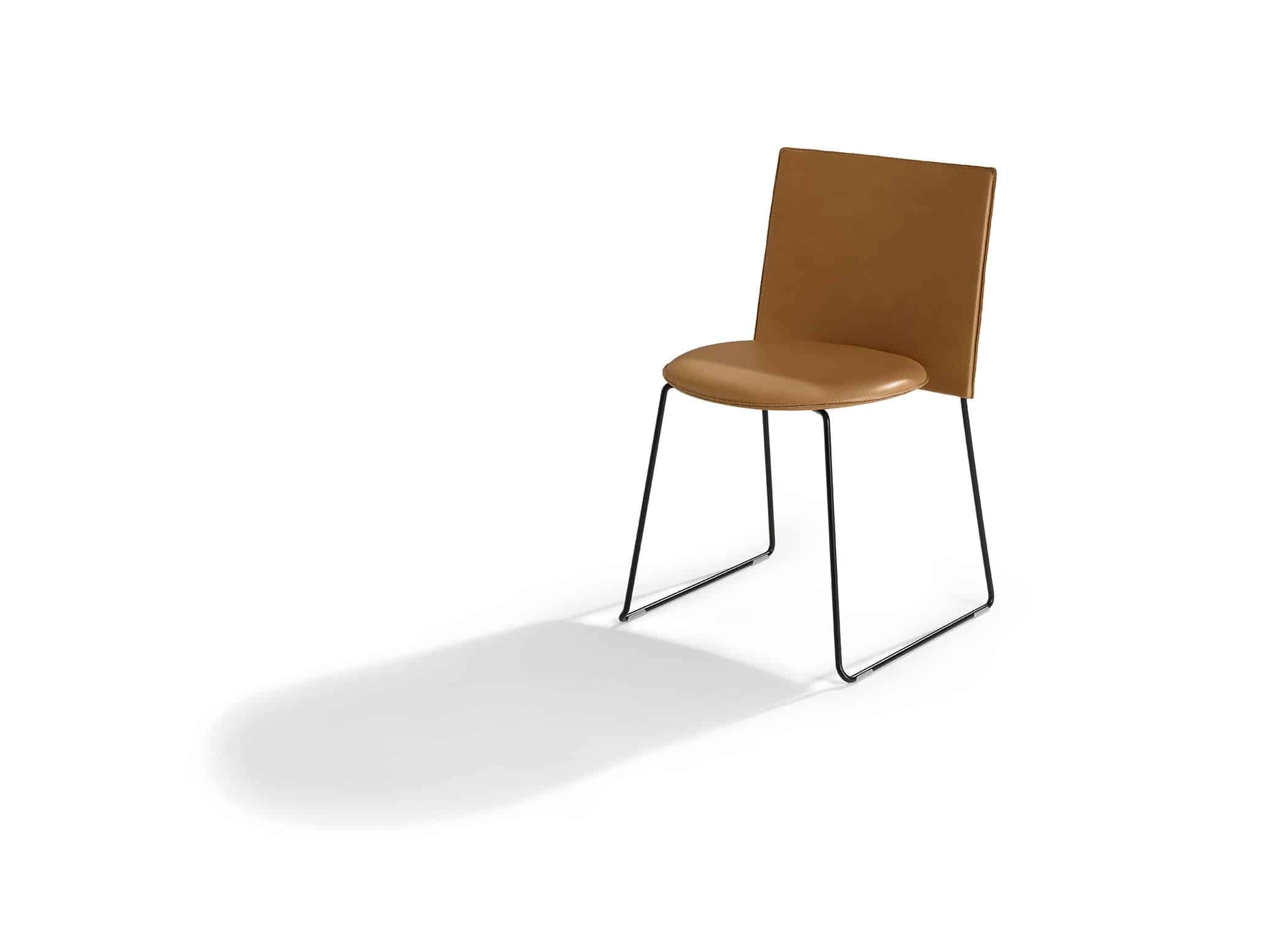 “I designed this chair for the competition which I won for the furnishing of the newly renovated auditorium in the Bergen University, originally built in 1894. The imposing window valves in the room were important as inspiration. The shapes are reflected in the square back and the circular seat. The chair’s character lies in the meeting between these two surfaces, giving the impression of floating in the air, with only a small concealed point of attachment. This gives the chair a minimalistic and slender character, with good stacking capacity. The brief for the competition stated that the auditorium must hold four hundred seated audience members, but that it can quickly and swiftly be refurnished for a dinner for a hundred people.”