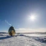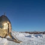 In response to a commission from Riksbyggen, Bigert & Bergström have created a sculptural chamber in the form of an egg-shaped sauna that has just been installed at Luossabacken in Kiruna, Sweden’s northernmost town.