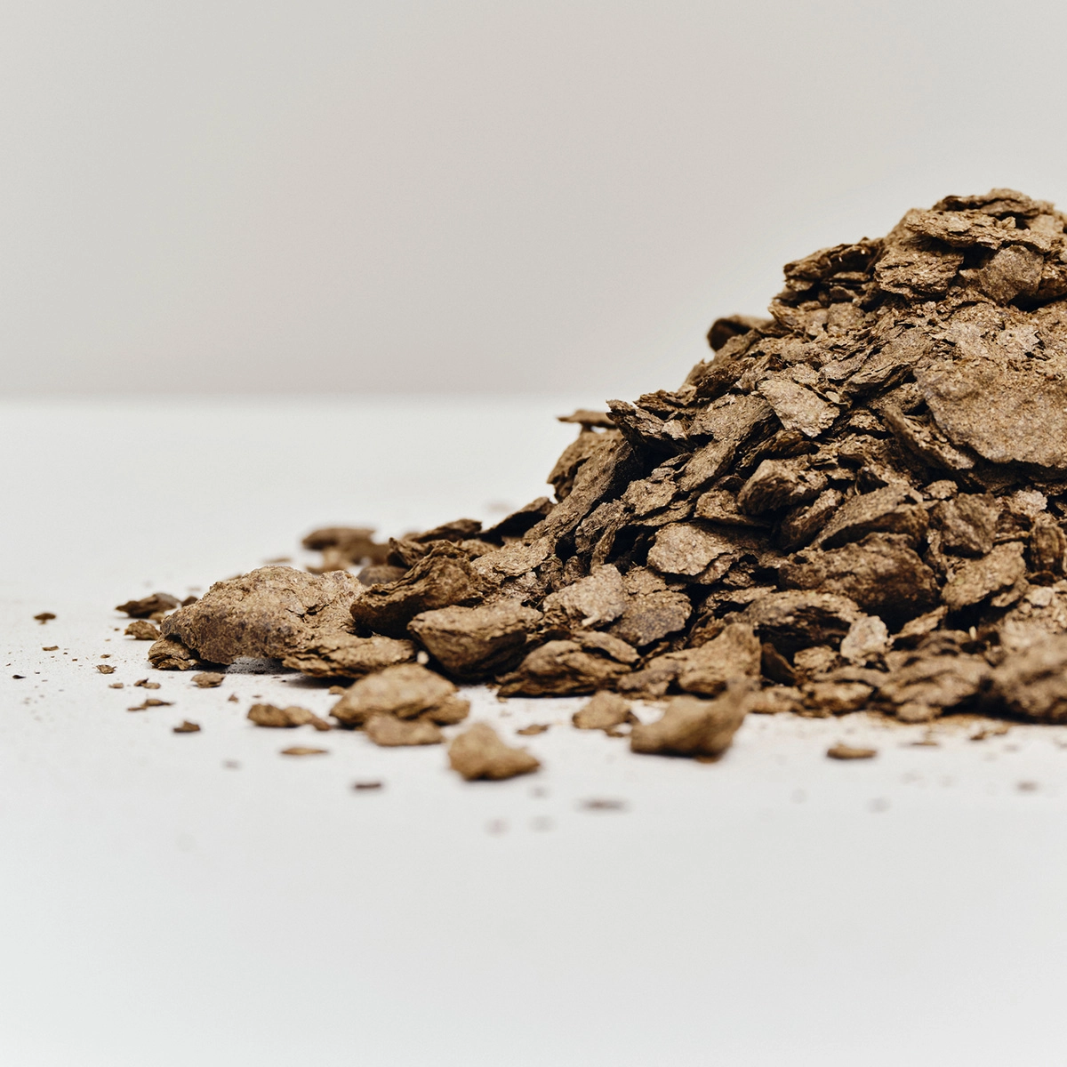 Mater has developed this innovative technology for press moulding many kinds of furniture. The technique allows efficient upcycling of industrial waste and, at the same time, reduces carbon emissions. For this collection, industrial waste from Grohe and BKI Kaffe get mixed with sawdust.