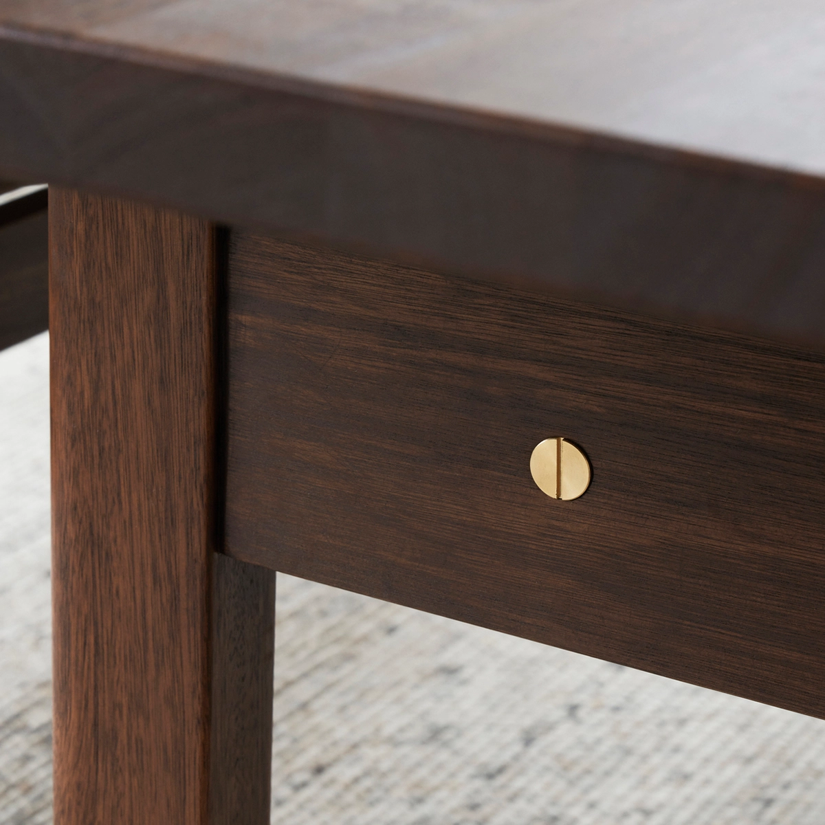 Børge Mogensen’s Asserbo Series comprises a table and bench made of solid, dark-oiled eucalyptus, and the series exudes a stringent, stylistically consistent design. The rounded shapes and visible screws of brushed brass give the series an informal aesthetic that clearly alludes to the Shaker style. The bench is available with either a permanently attached or wall-mounted backrest, as well as cushions in leather or fabric, making it possible to create a personal expression. The series was originally made of pine, but to preserve the beautiful expression of the furniture for as long as possible, the series is now made of eucalyptus, a much harder wood distinguished by its calm grains of wood, reddish-brown colour and scarcity of knots. Naturally, the wood comes from sustainably forested, fast-growing eucalyptus trees.