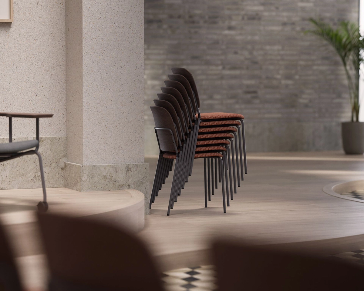Bow is available with or without armrests. The chair can be both stacked and linked, which is practical in different types of educational environments, but also in cafés and dining rooms. Bow is also a great choice for meeting and conference rooms or touchdown spaces. The variant with armrests can also be suspended from the table edge – a clever function that simplifies cleaning.