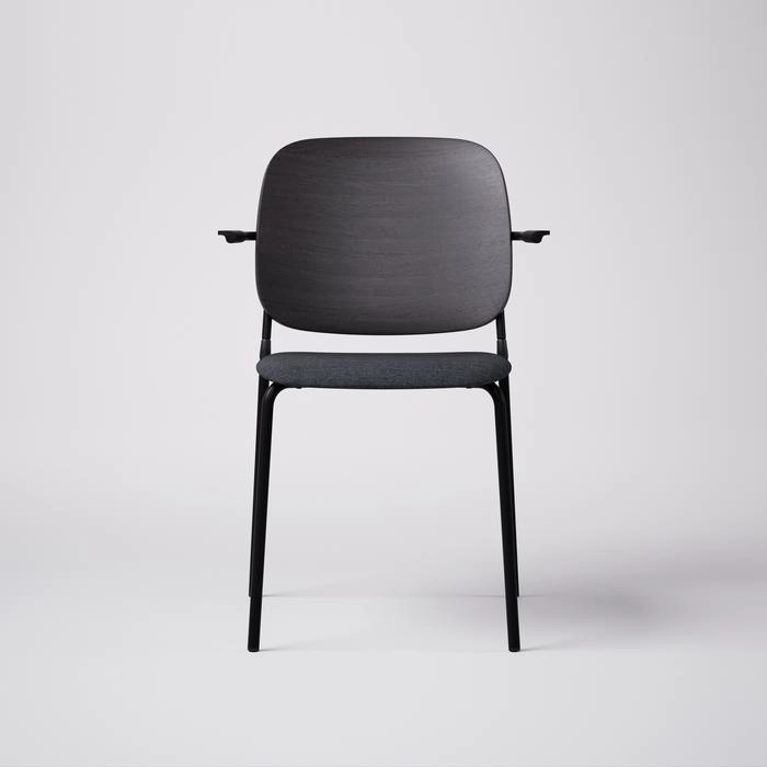 The circular and entirely separable layer-by-layer design means the piece can be renovated and updated over time. Instead of adhesive, Bow fits together using assembly sleeves, and the seat and back are attached to the frame with screws, which is unique for this type of chair. Because all parts can be replaced, it’s easy to convert Bow from a chair without armrests into a chair with armrests or vice versa. It’s also possible to reupholster the product, and it can be waste separated and recycled when it reaches the end of its life.