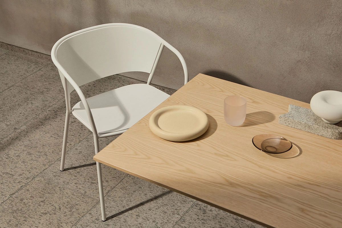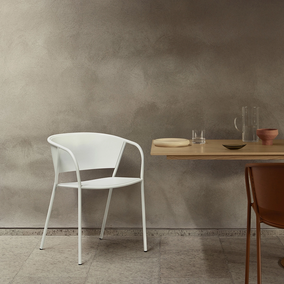 The thin laminated backrest is mechanically attached through a fixture plate flush with the wood. This provides the possibility easily separate materials, to repaint or repair a used chair – and eventually to safely recycle the product. All this enables a sustainable and circular life cycle for the product and benefits for the user, as well as the environment.