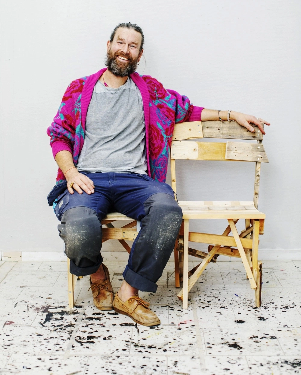 “Finn Ahlgren sees potential in discarded materials and encourages everyone to become recycling ‘raw carpenters’. His practice includes utilizing all conceivable materials that can find new use and restoring the hand’s importance for artistic and mental development. With his eye for form and the beauty in the worn, he creates a symbiosis between function and art.”