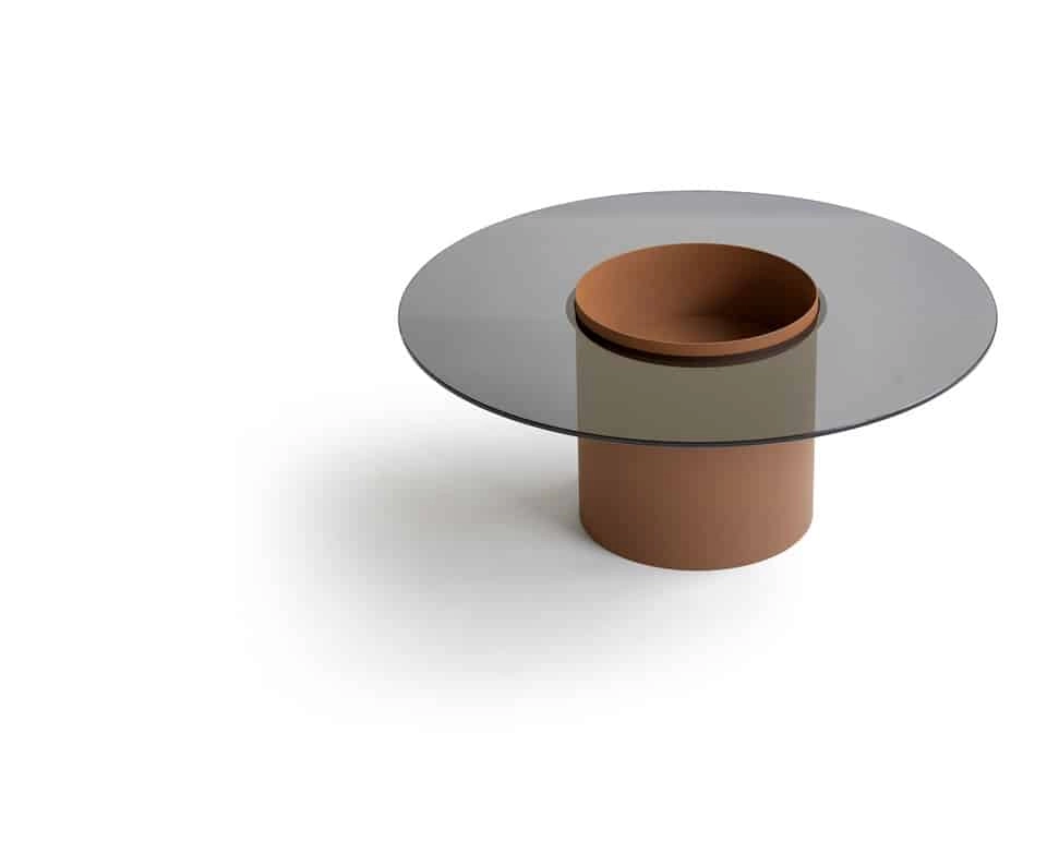 The cylinder that pierces through the glass table top is just waiting for some flowers, snacks, wine bottles, toys or that little touch that brings the design together. Bucket longs to be the centre of attention. Not just a table, but a design piece that constantly changes character. Just look at the contrast between the rounded or gently curved square table top and the cylindrical base available in earthy varnishes inspired by sand, terracotta, anthracite and clay. Even more colours are available.