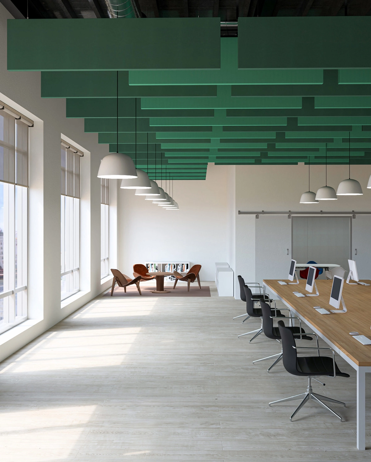 Baffle is a pioneering acoustic concept for ceilings that allows for vertical suspension – Kvadrat