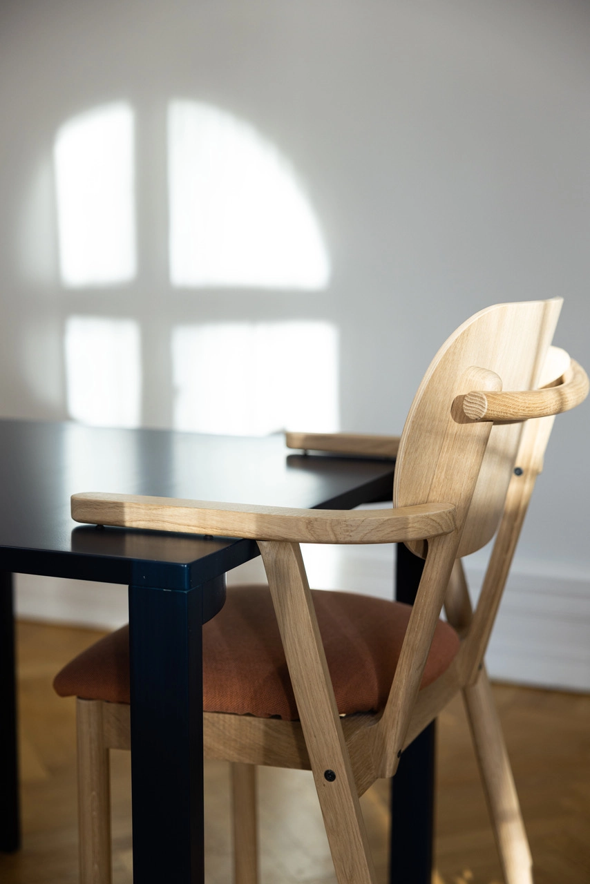 The stackable chair and armchair has it´s origin in a constructive idea about a wooden …