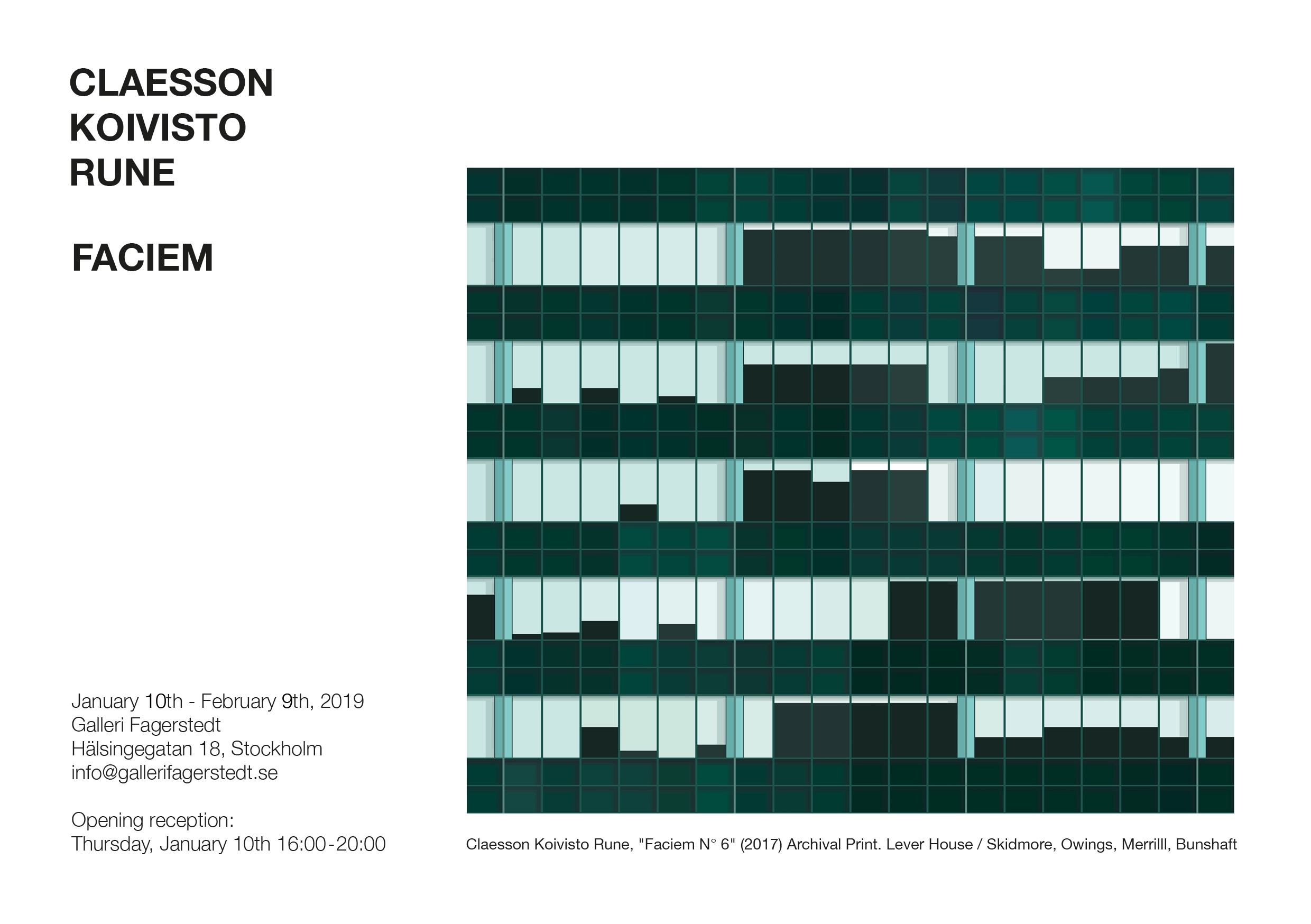 Claesson Koivisto Rune present their first exhibition of artwork and the European premiere of ‘Claesson Koivisto Rune – Faciem. In search of the essence of the grid‘ at Galleri Fagerstedt in Stockholm, January 10th – February 9th.