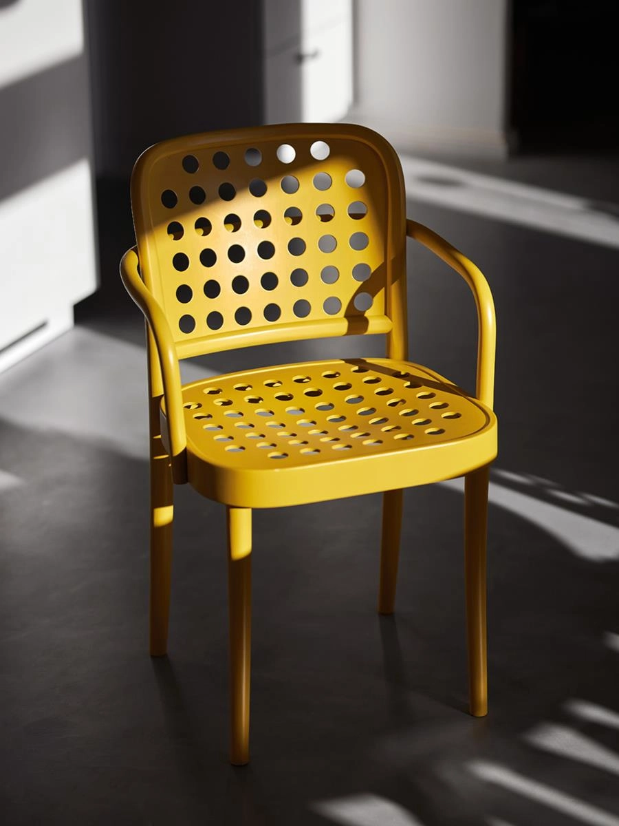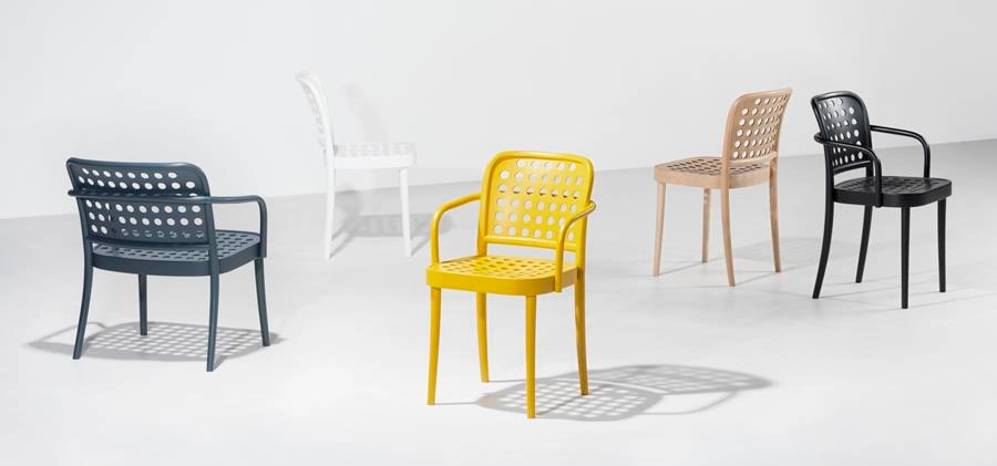 The 822 model gains its unique character from the graphic dot perforations in the plywood seat and backrest. They impart the chair’s distinctive character and create a shifting visual motif, connecting with the interior, the colours worn by the person sitting in it, or rays of sunlight. “We had to adjust the dot pattern to the chair’s structure, to avoid some construction elements which are placed under the seat. The history of bent wood is evolution, not revolution, and we are continuing this story. And that is why we call the chair 822, because we are in 2022,” Mårten Claesson explained.