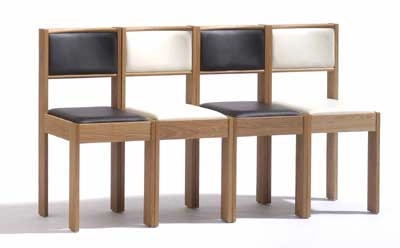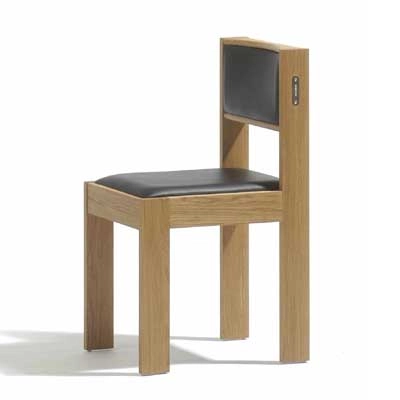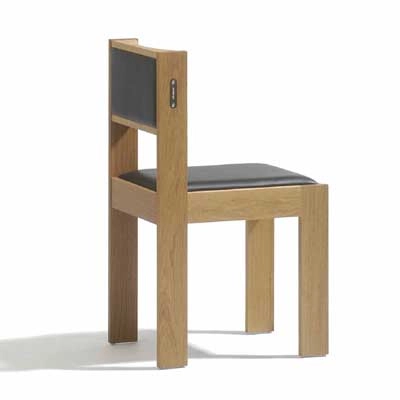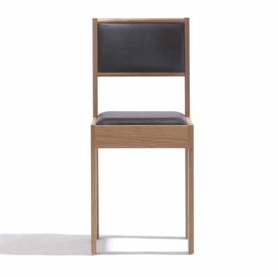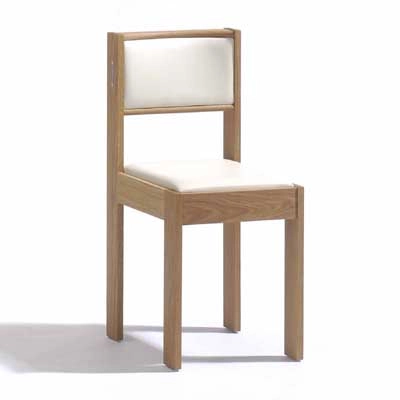 Chair. Frame of solid oak or birch. Backrest can be upholstered or in ribbed wood, The seat is upholstered. Available in other types of wood and stain for projects.