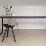 Mogens Lassen, nothing was ever left to chance and this philosophy is clearly seen in Conekt. The custom-made L shaped brackets connecting the table’s top with its legs are thought through to the smallest detail. Sitting perfectly flat, the brackets add an industrial beauty to the minimalist table, giving it a unique character and edge. Conekt’s square wooden frame legs are attached with precision at each end of the table, creating a slim silhouette that has a light and timeless expression.