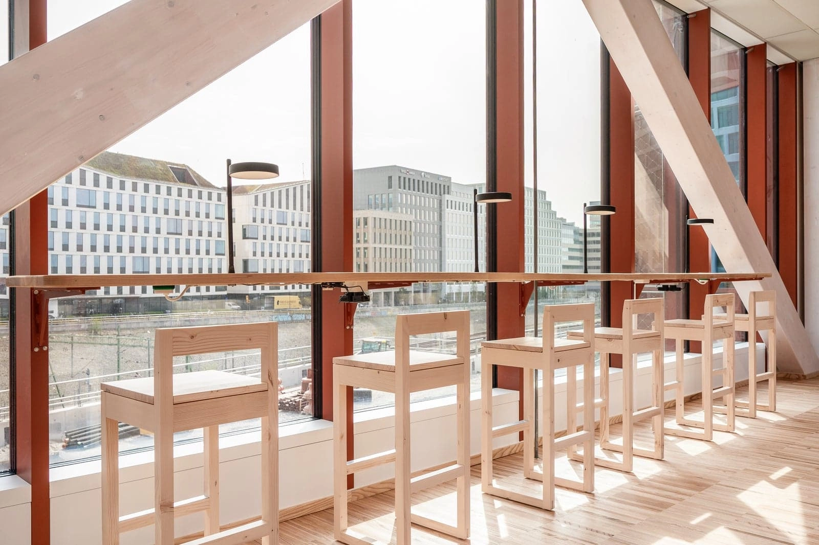 In a circular collaboration between Swedese, Granitor Properties and Addentity Interiör, old construction timber and rough CLT (Cross Laminated Timber) pieces have been transformed into furniture in Malmö’s new Embassy of Sharing district.