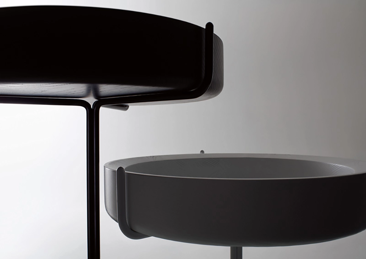 We believe that German-born Corinna Warm’s revolutionary bowl tables will be the most talked-about items at the fair! Drum, bowl tables in three different heights, 36, 46 and 56 cm. The bowl, which is detachable, is made in solid ash wood, in natural lacquer, white- or black finish. The steel base comes in white- or black lacquer.