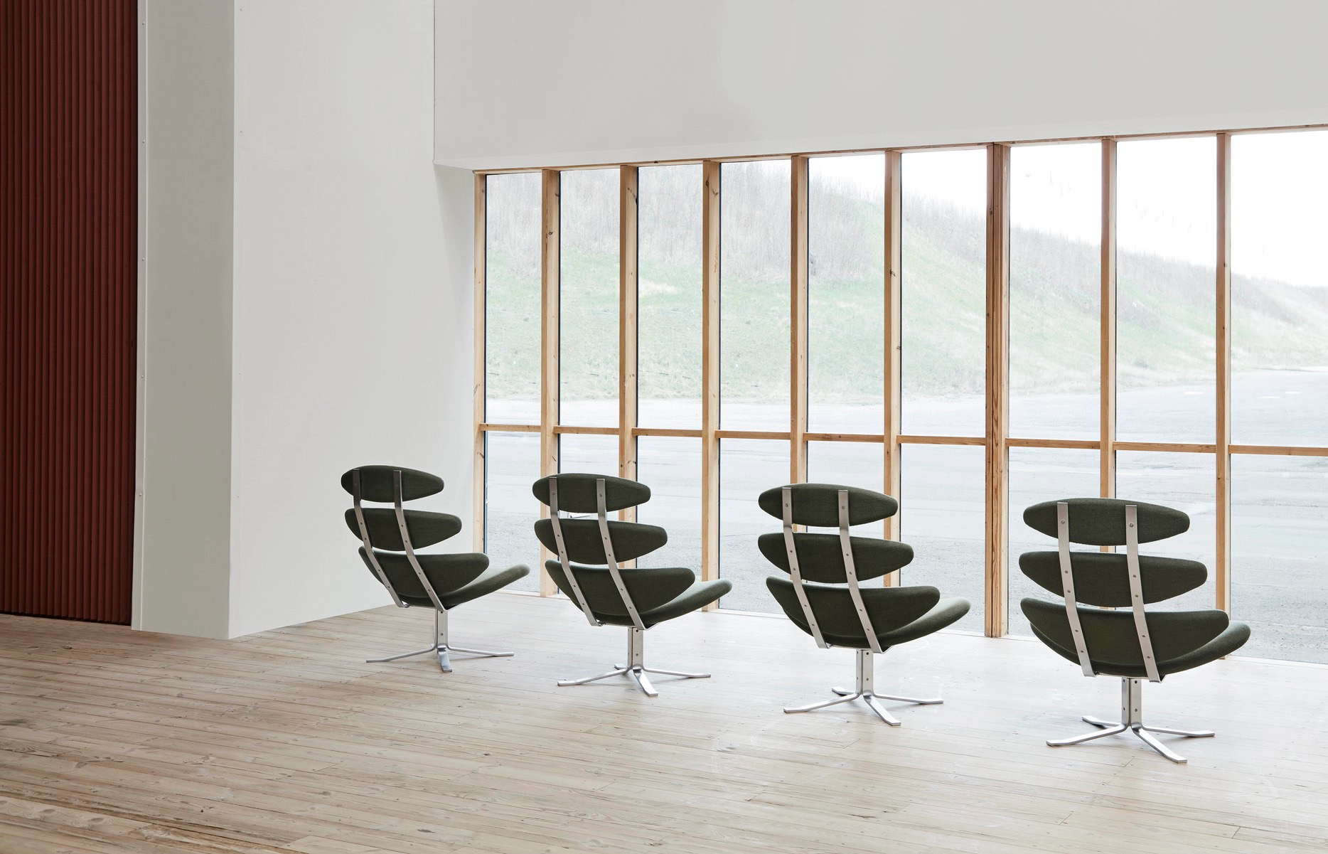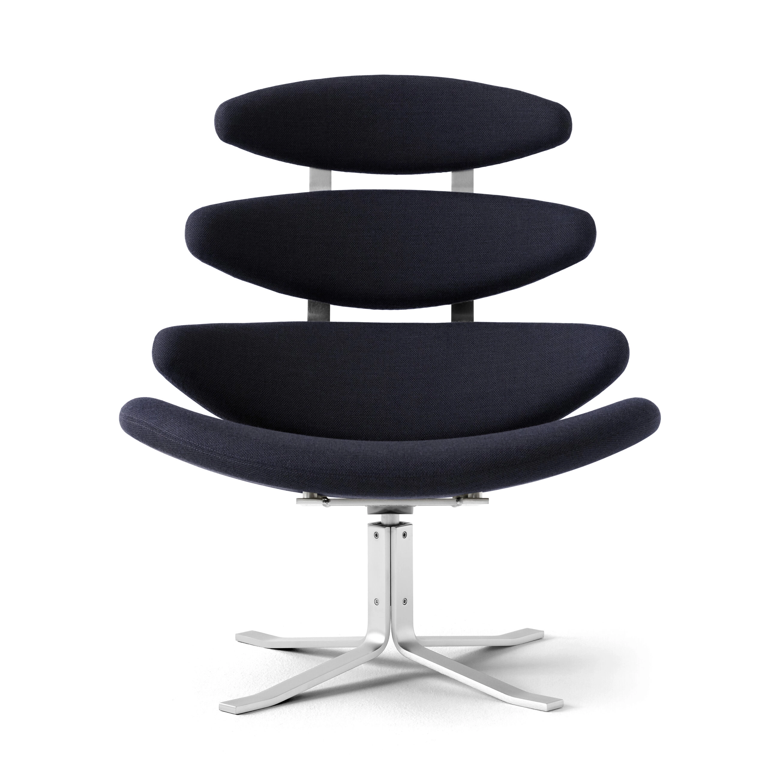 The Corona Chair is an eye-catching and experimental take on Danish design. A stringent design with elliptically shaped, upholstered seat pads descending in size. It’s an intriguing approach that challenges conventional seating, resulting in Corona’s image as a design icon coveted worldwide.