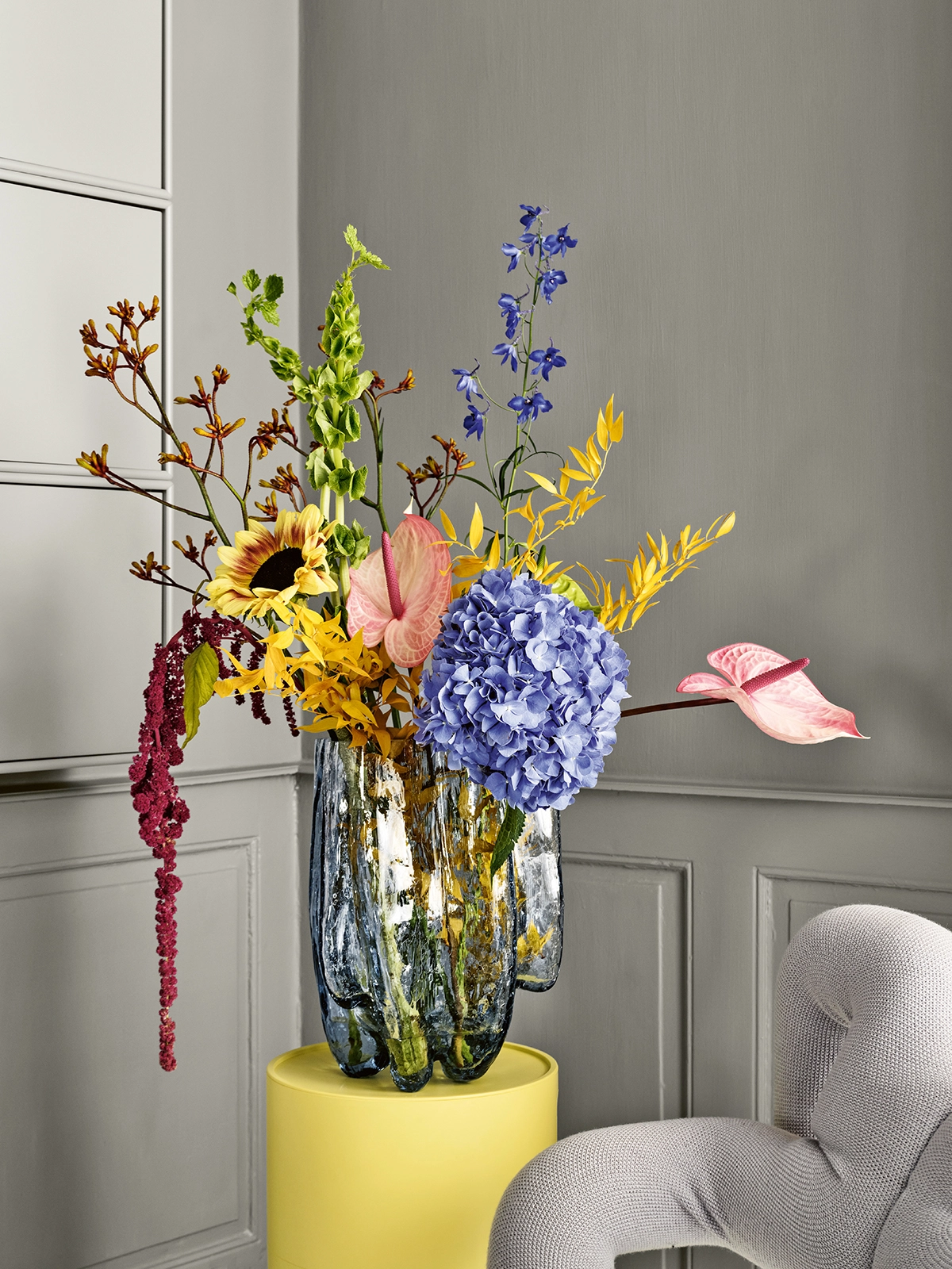 Today’s generation of designers is fascinated by traditional craftsmanship and the aesthetic possibilities it affords, also because it is the antithesis to pervasive high tech. Unique products that are perfectly crafted and are one of a kind are in high demand. At the same time, environmental sustainability is gaining traction. The organic-looking Crackle Circular Vase XL by Swedish glass manufacturer Kosta Boda falls right into the category of satisfying both aims. The mould for the unusually tall mouth-blown vase with a height of 37 cm, is hollowed out by hand. The lively surface of the vase owes its appearance to an old glass-making technique. The vase is mouthblown into a mold before the sizzling hot glass bulb is dipped into cold water causing tiny, irregular cracks to appear on the surface – hence the English name “Crackle”. It is a process that captures some of the magic of the opposing elements of fire and water. The glass is then reheated in an oven where the tiny cracks grow wider, and their sharp edges disappear. The result is a surface structure that resembles frozen ice, which is why it is also called “ice glass”. The jury’s verdict: “The way in which an old technique has been revived is exceptional. The industry should be encouraged to nurture this type of artisanal technique. In the case of the Crackle Circular Vase XL, it has been reinterpreted in an almost provocative way. The oversized vase shows a strong personality. It is sculptural – a masterpiece.” The product is not only remarkable for its formal composition, but also for its economic use of materials as the vase is a result of Kosta Boda’s circular glass initiative. This sees waste glass from the company’s own glassworks being sorted by colour before it is recycled into the production process. Every new product, including the Crackle Circular Vase XL, therefore has its own unique colour. The blueprint for the vase with its organic use of forms also incorporates a practical approach to the circular economy, an aspect that will increasingly affect design in future.