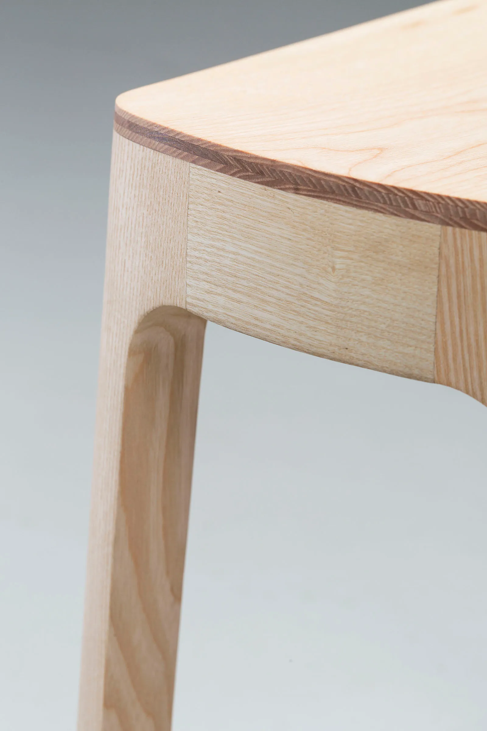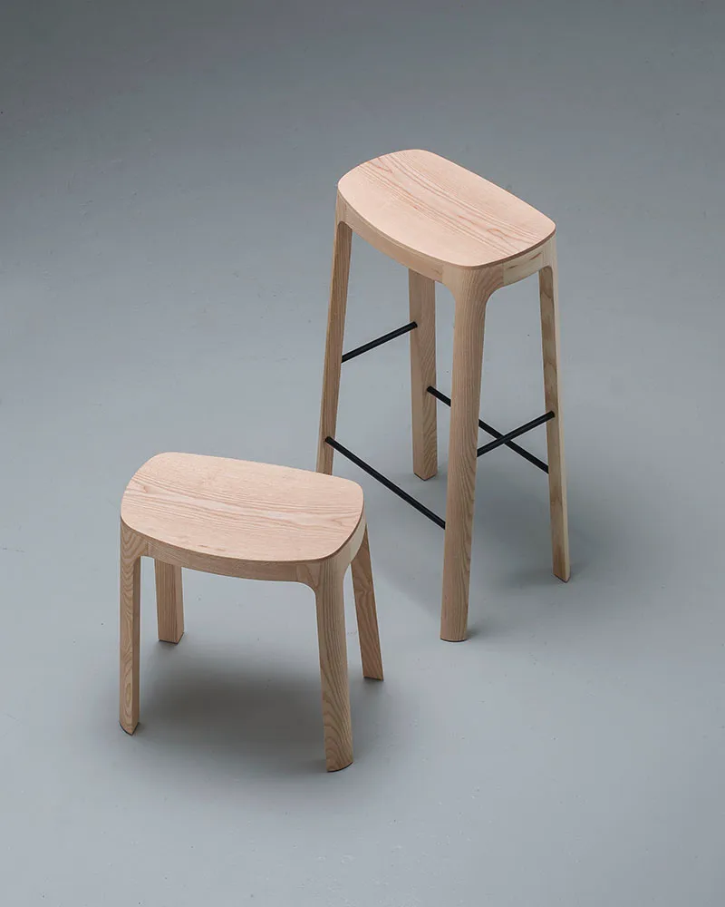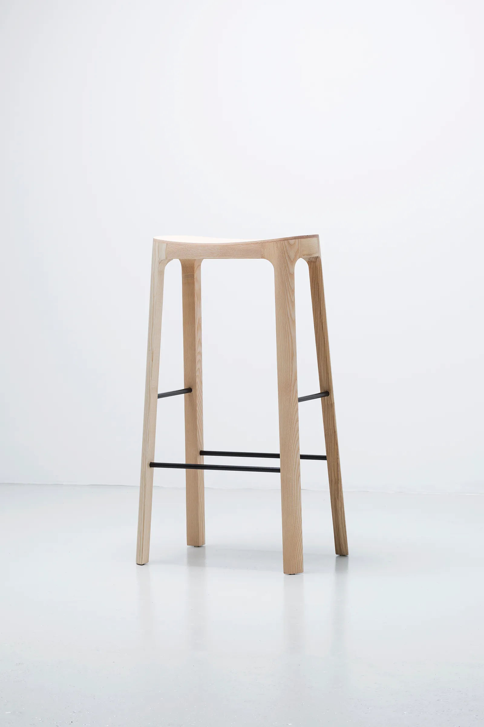 The aim was to create a robust stool with a slender width whilst still retaining comfort. The purpose for this is to maximise space at bar and work areas whilst giving a relaxing sit for long seating periods. The gentle curves and strong silhouette add to the inviting nature.