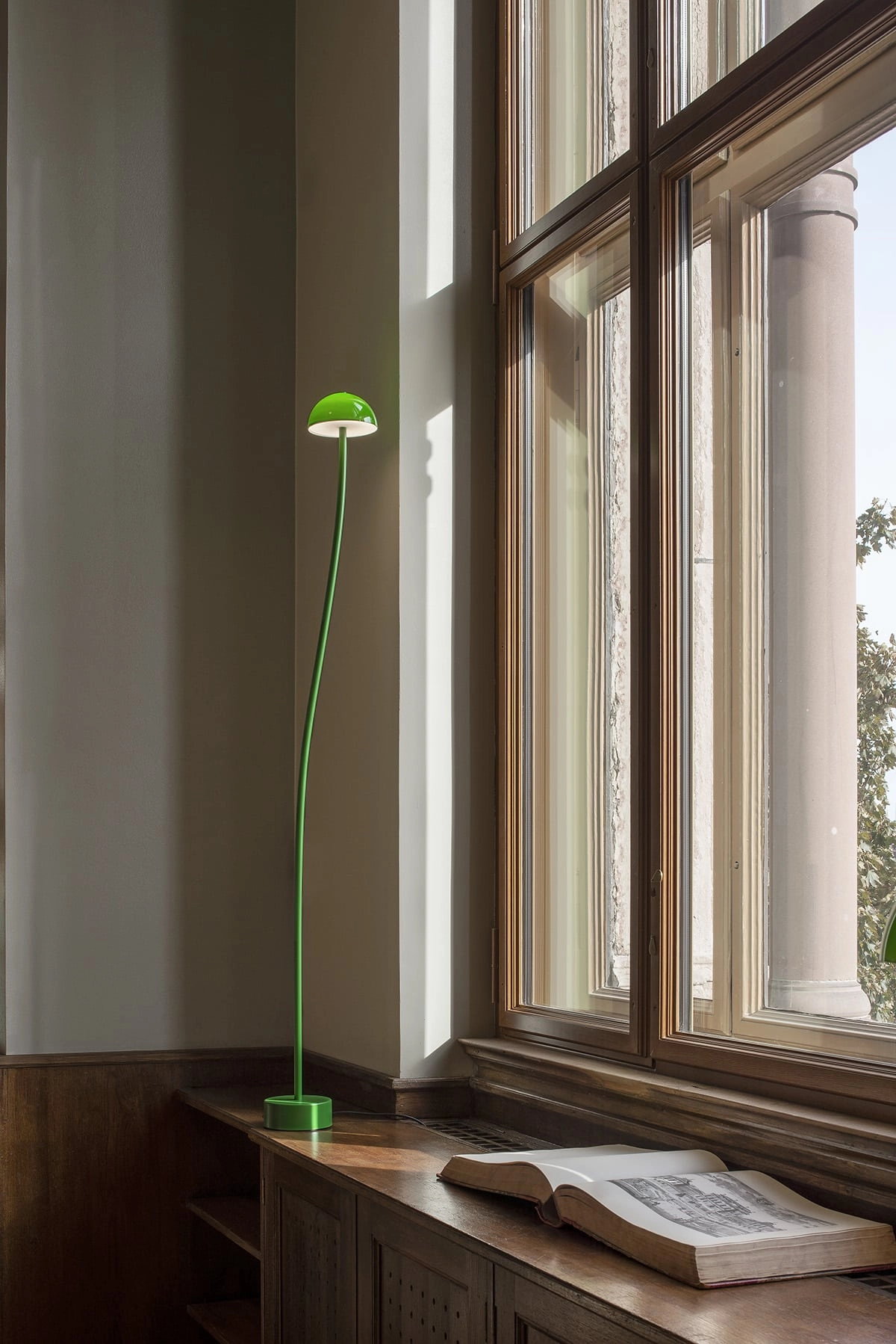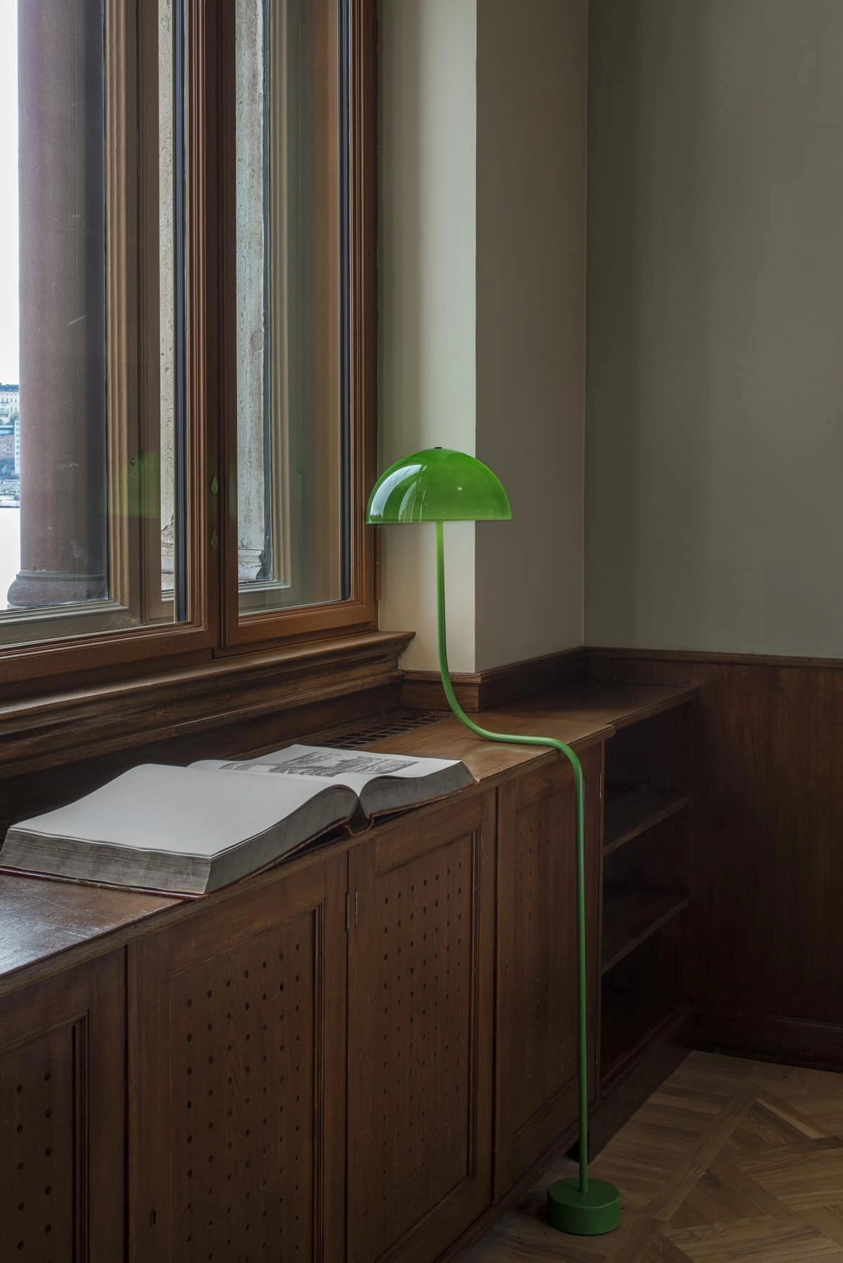 Designed for the newly renovated Art Library at Nationalmuseum, Curve borrows its personality from the classical library lamp. In this transformed interpretation, the suite of pendants, floor and table lamps become calming, languid figures. In traditional green and white glass or with metal shades in pigeon-blue, ivory, white or green. With inbuilt LED module 8W. Shades in diameter 150, 200, 300 mm.